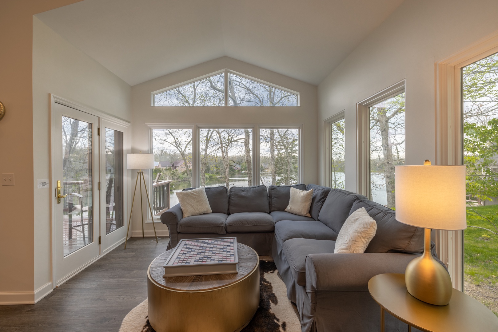 Enjoy your stay in this upscale home with stunning indoor and outdoor views of Lake Charrette