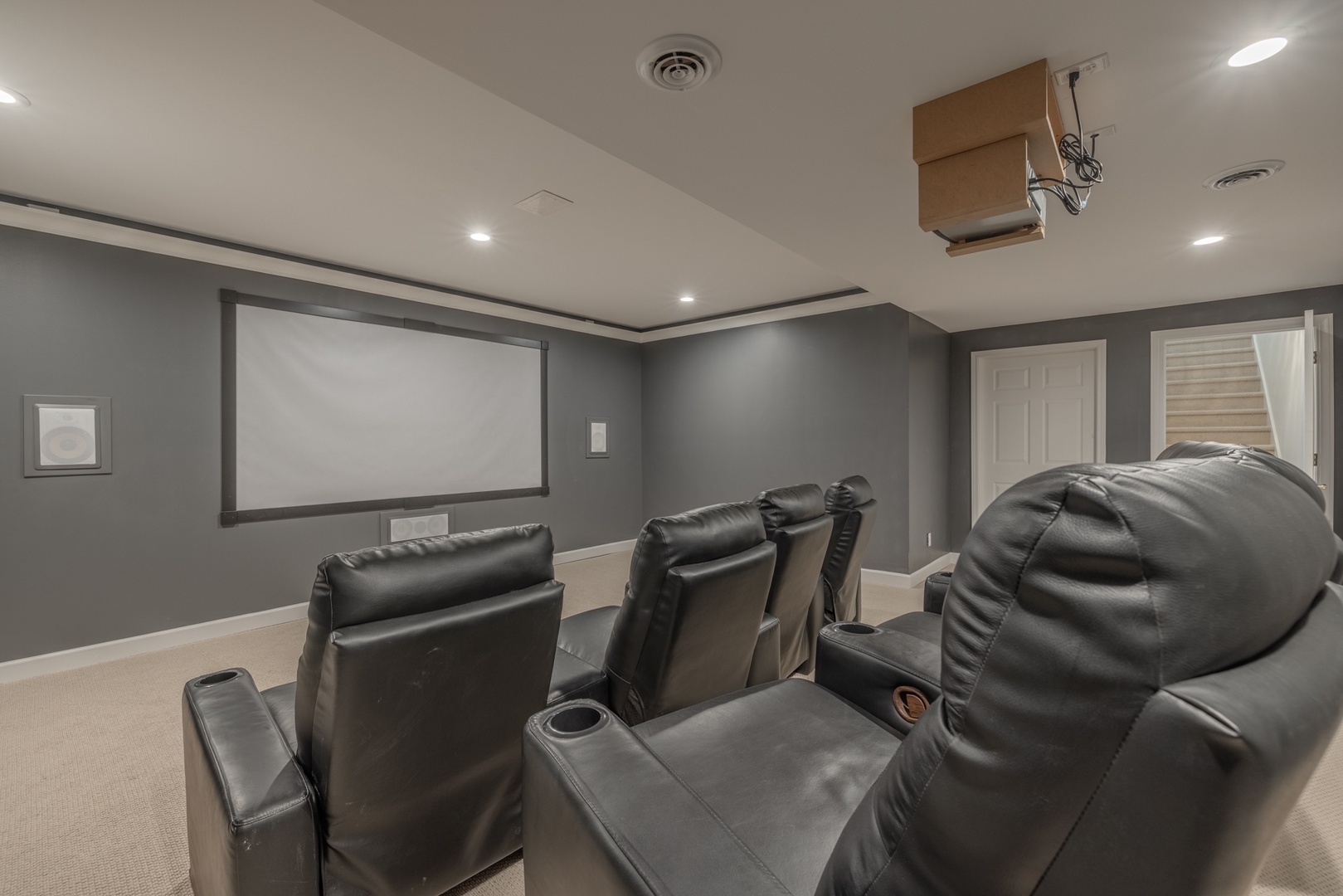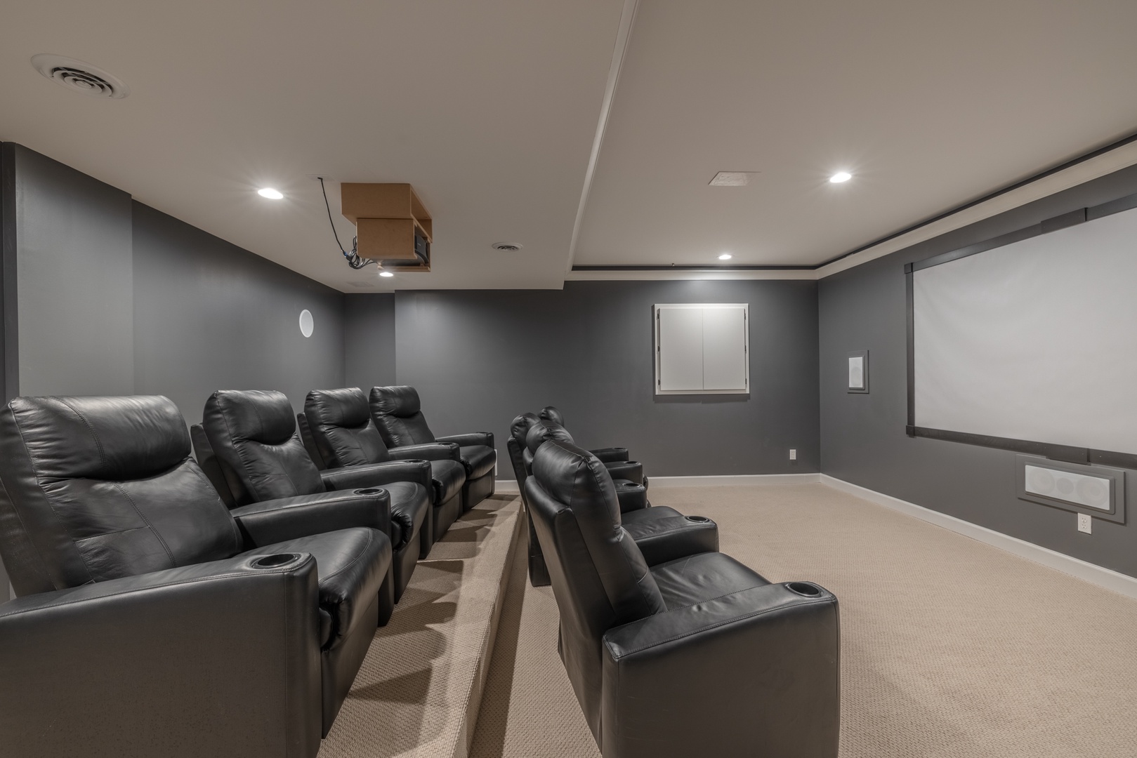 Comfortable leather recliners are ready for you to kick back and relax while watching your favorite movie