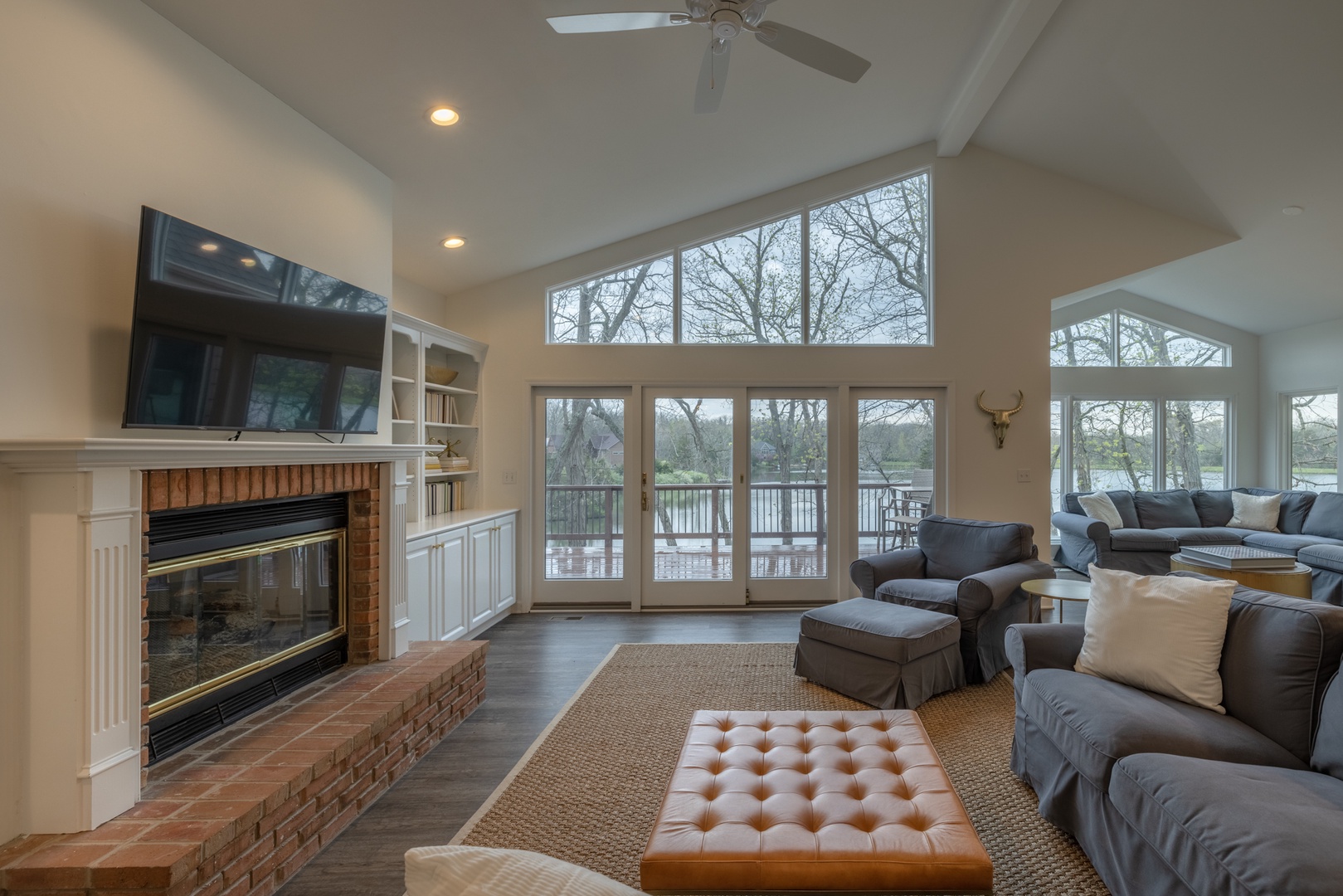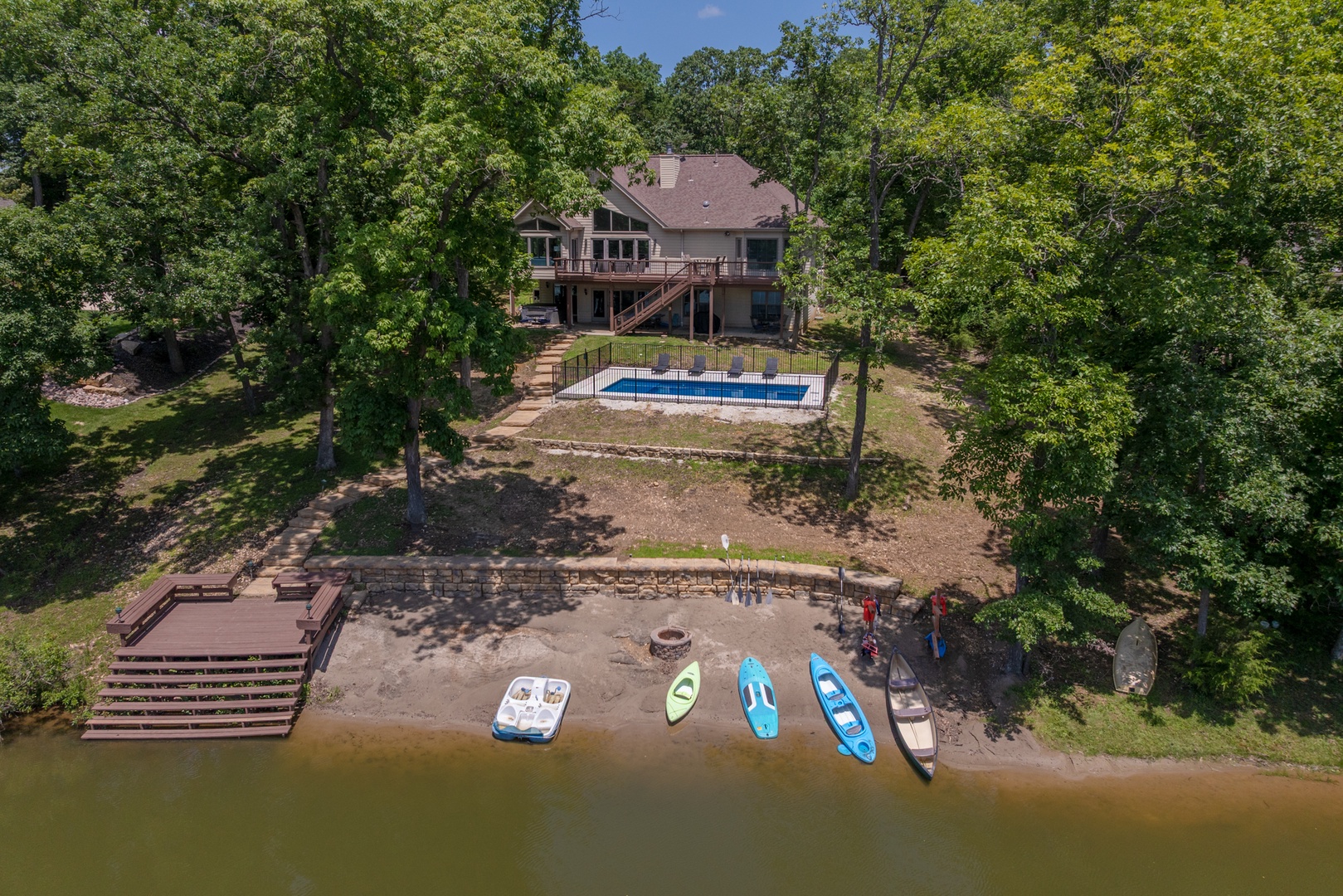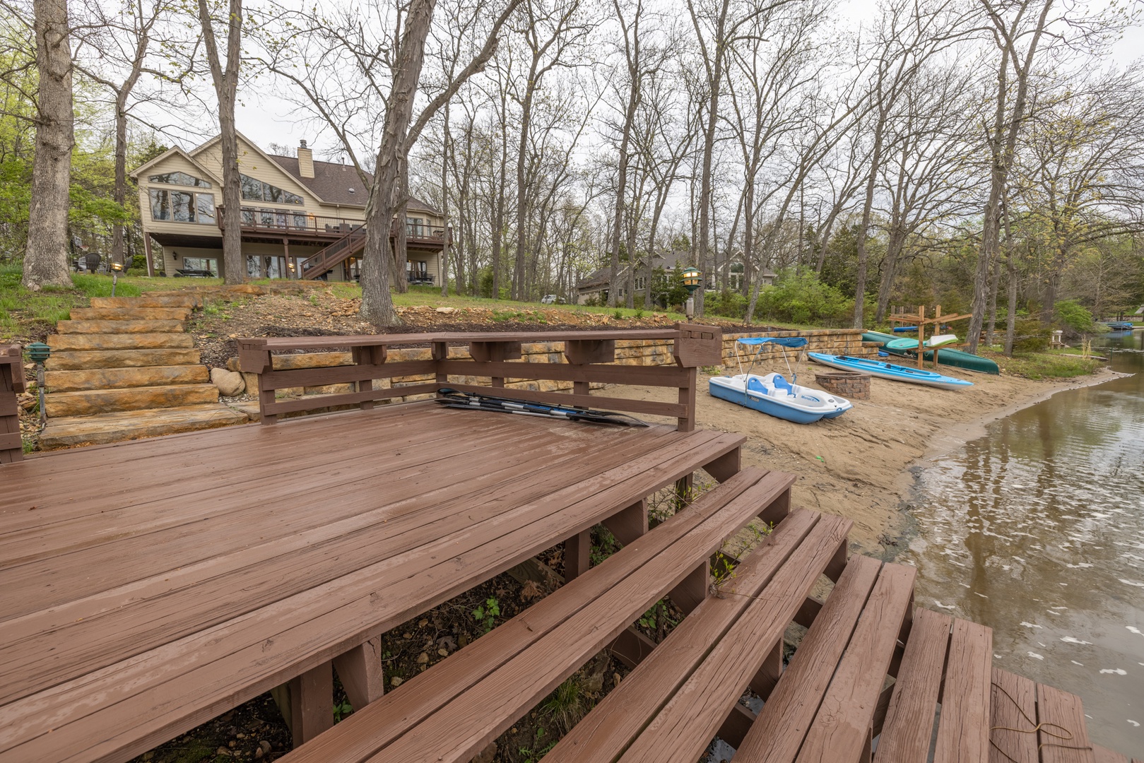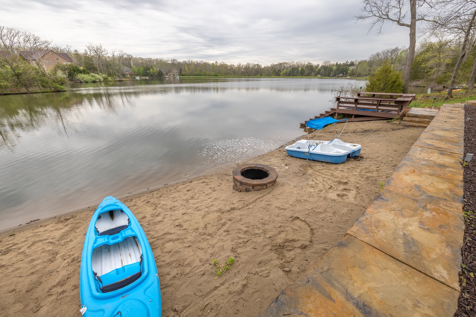 When you are ready to enjoy the outdoors, you will have plenty to choose from! Lake living has no limits with our variety of water toys and private sand beach. Four outdoor living spaces offer complete relaxation – sip a cocktail on the private dock, watch the sunset on the upper deck living area, cuddle up by the outdoor fire pit in the evenings, or walk-out onto the lower level patio for morning coffee.