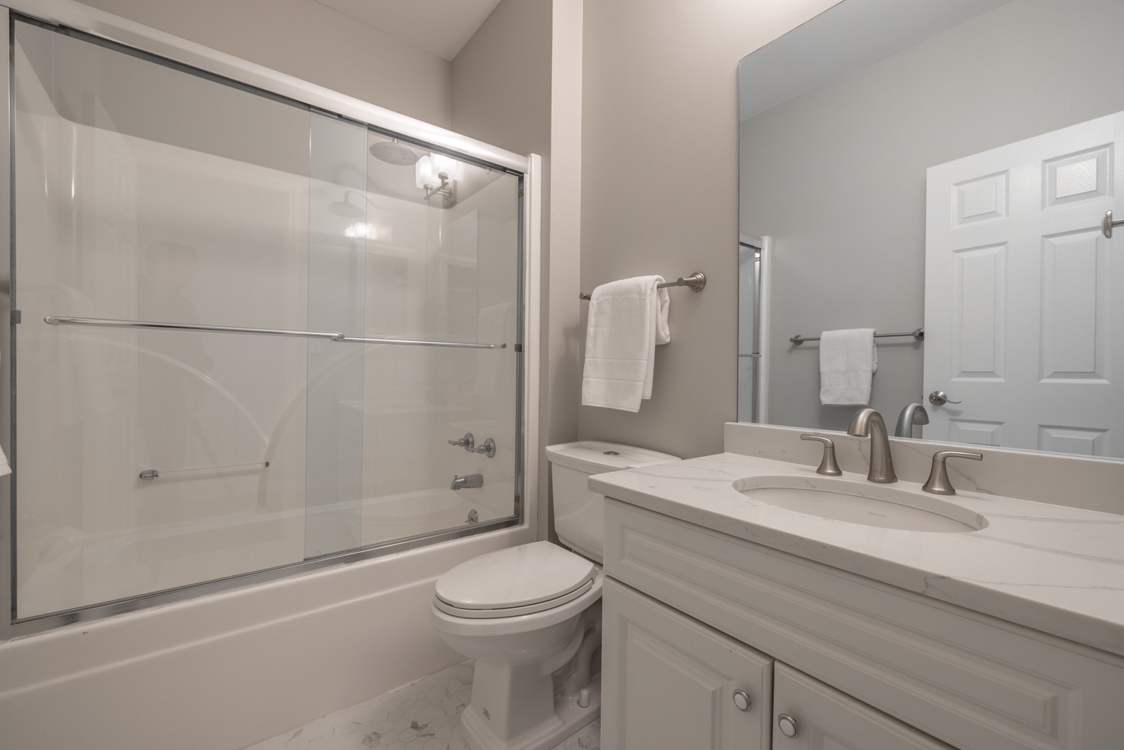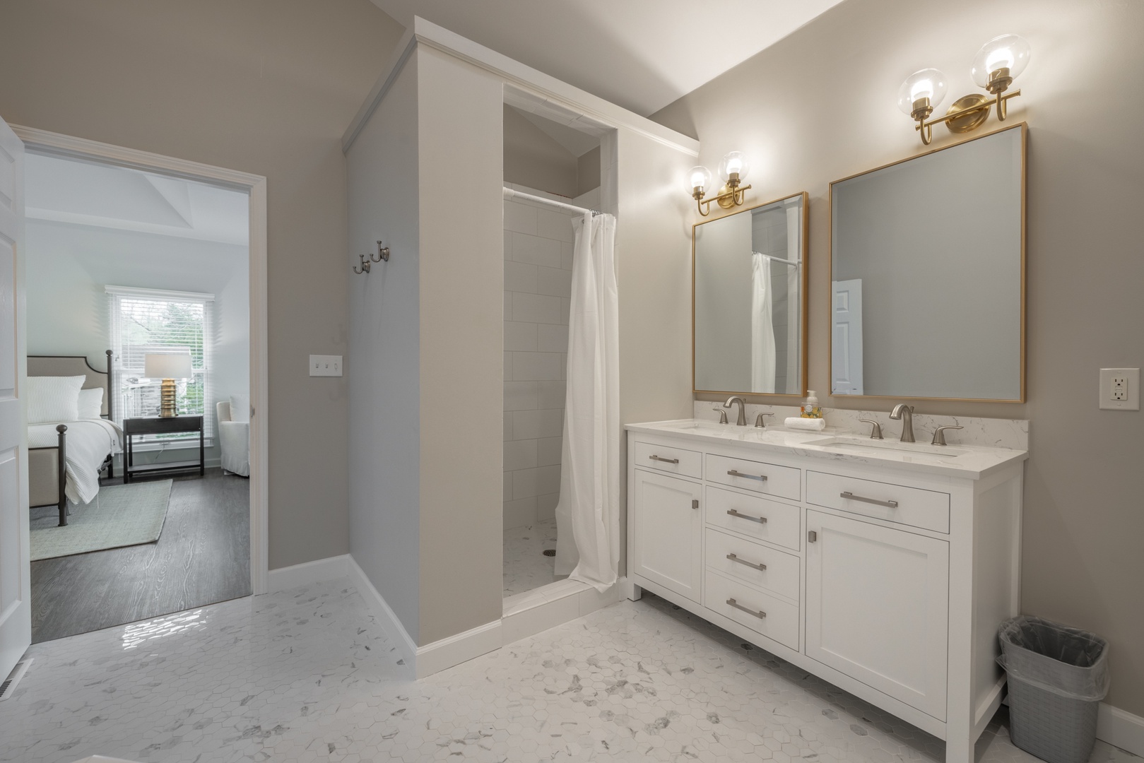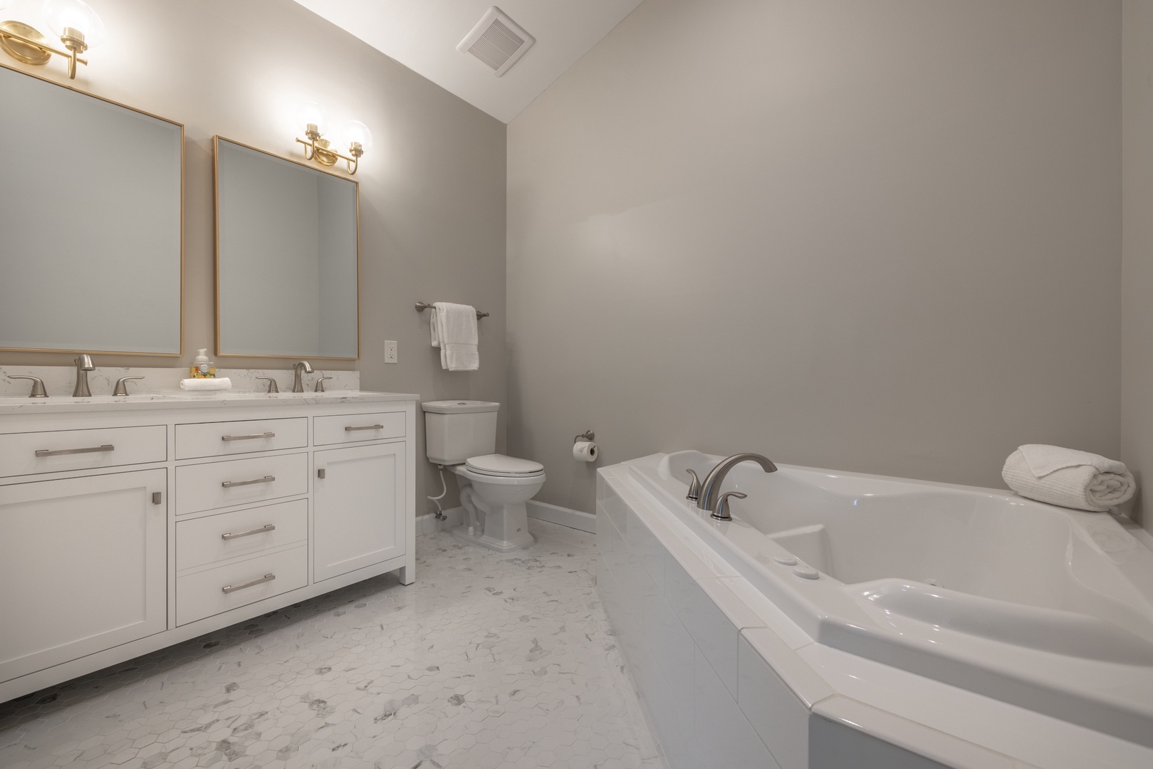 • Private Primary bedroom on the main level with one king bed and en suite full bathroom with separate shower and jetted bath tub, plus, double vanity sinks