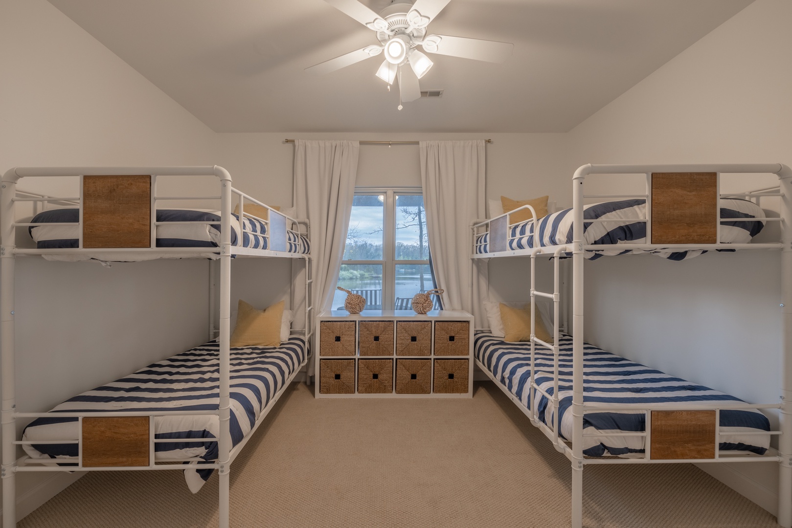 The bunk room is perfect for the kiddos or additional guests with two sets of twin over twin bunk beds