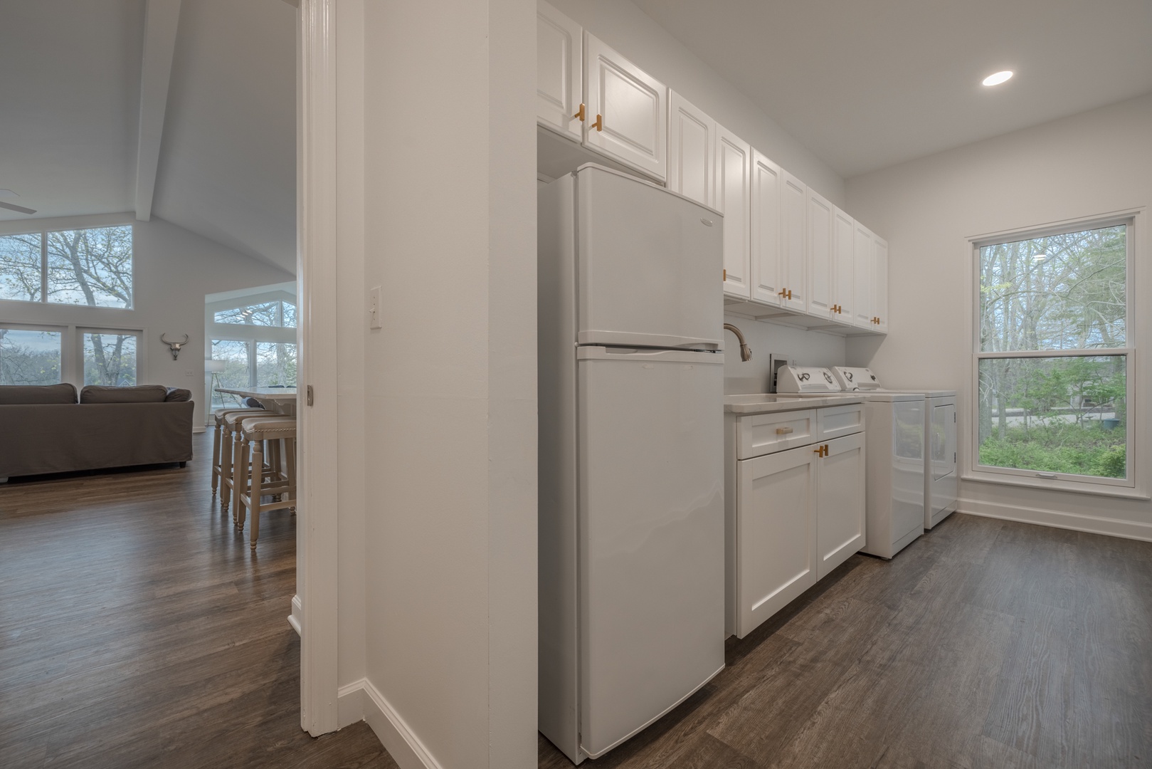 • Laundry room off of the kitchen with washer and dryer and second refrigerator