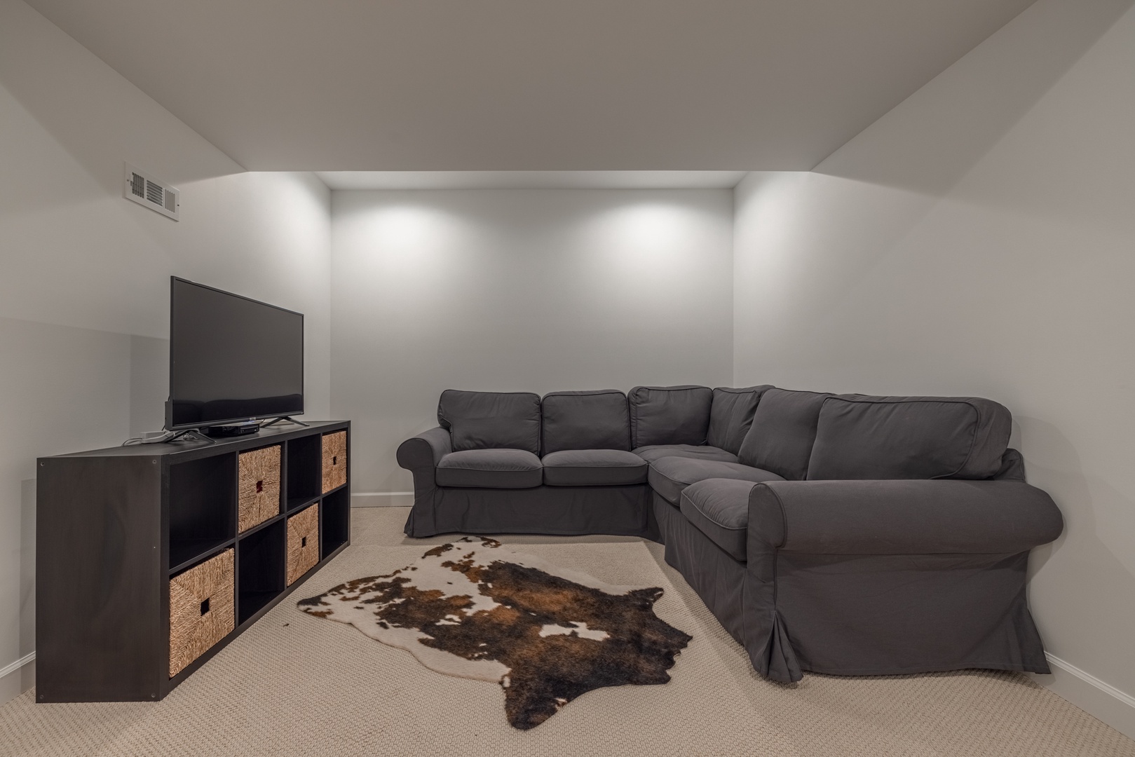 A bonus room in the lower level can be made into a quiet office space, a game room, or a play room for the kids