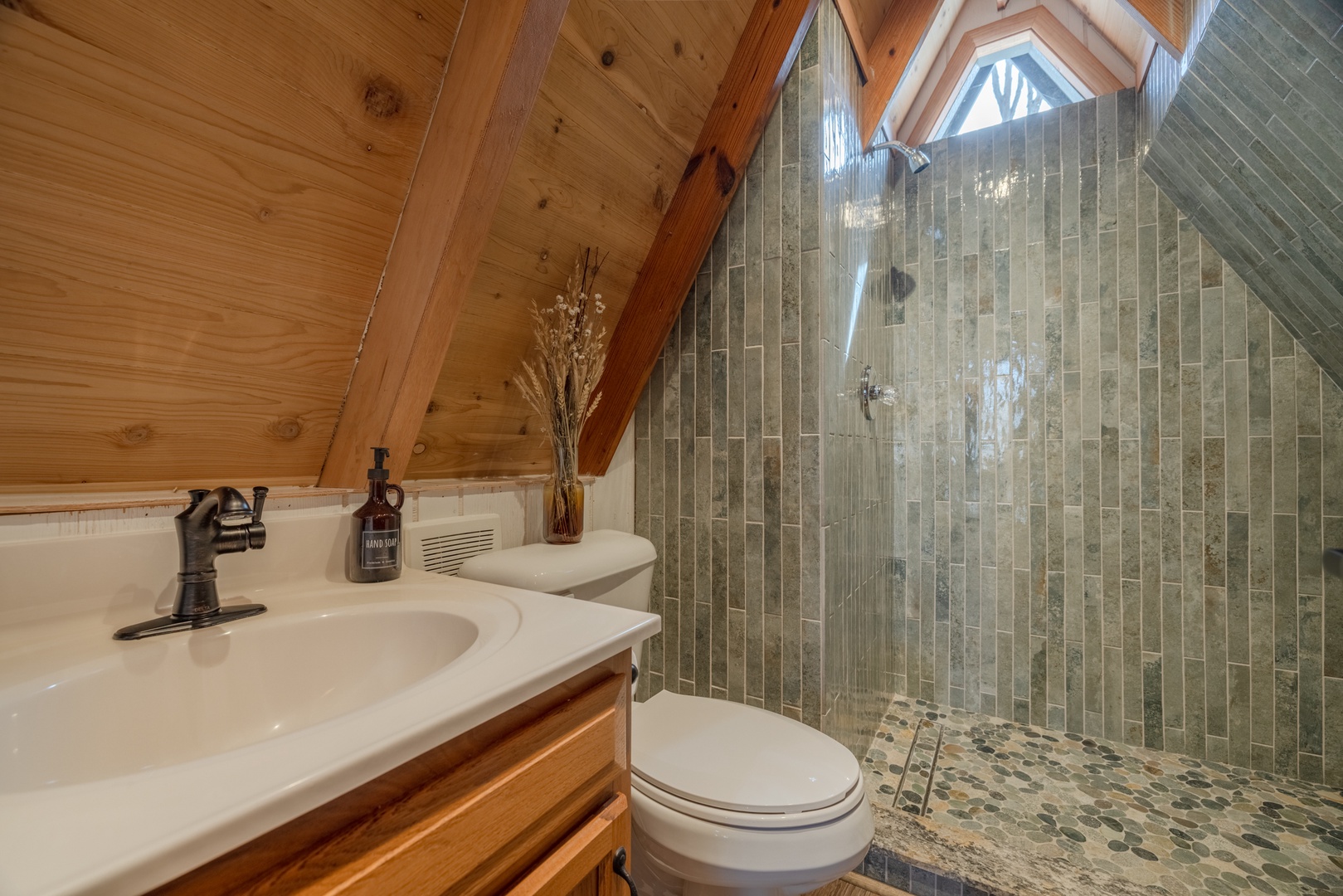 The layout is ideal for groups or families, comfortably sleeping up to 7 guests. Retreat to the main-level primary bedroom with its plush king bed, or let guests spread out between the loft, sunroom, and living room—each offering comfortable sofa sleepers, including a queen memory foam option in the sunroom for an extra touch of luxury. Two full bathrooms make getting ready effortless, even with a full house.