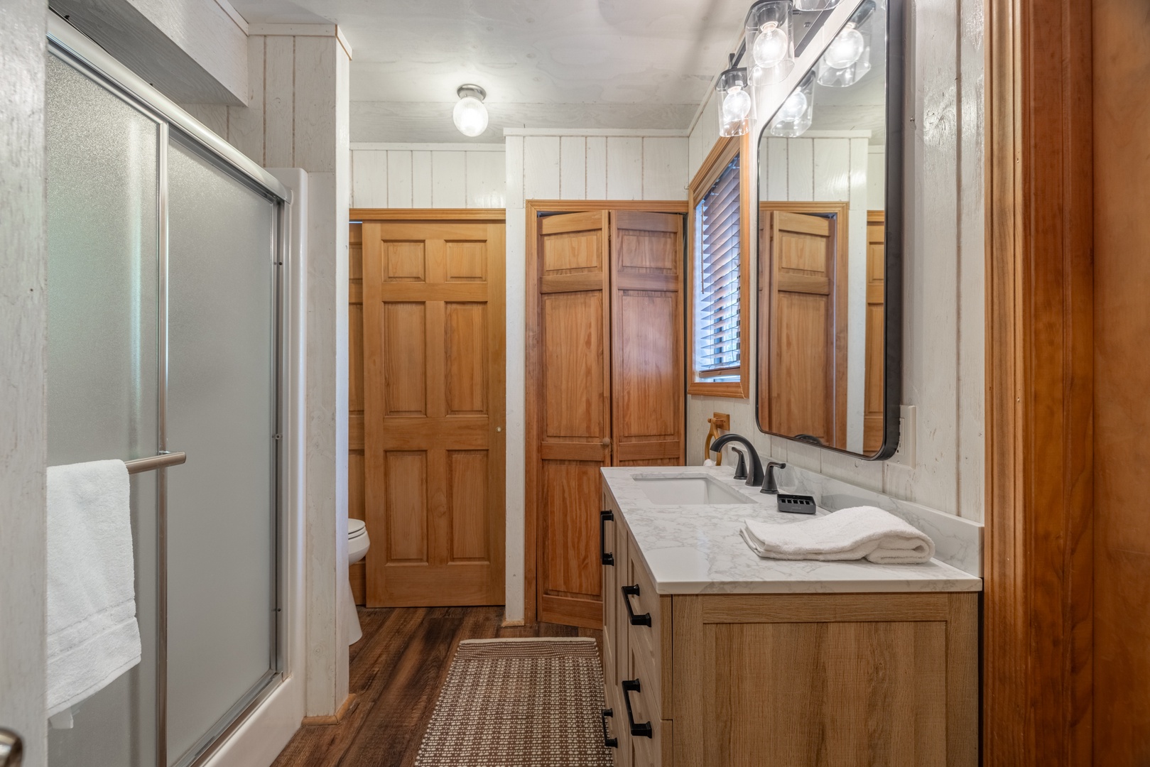 • Primary bedroom on the main level with one queen bed and easy access to the main level bath
