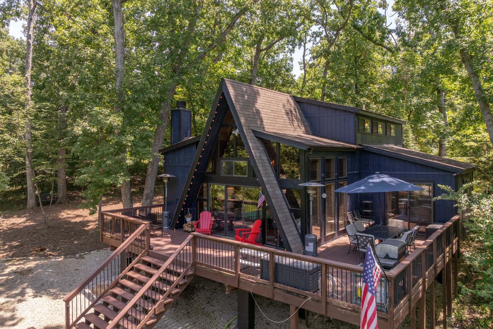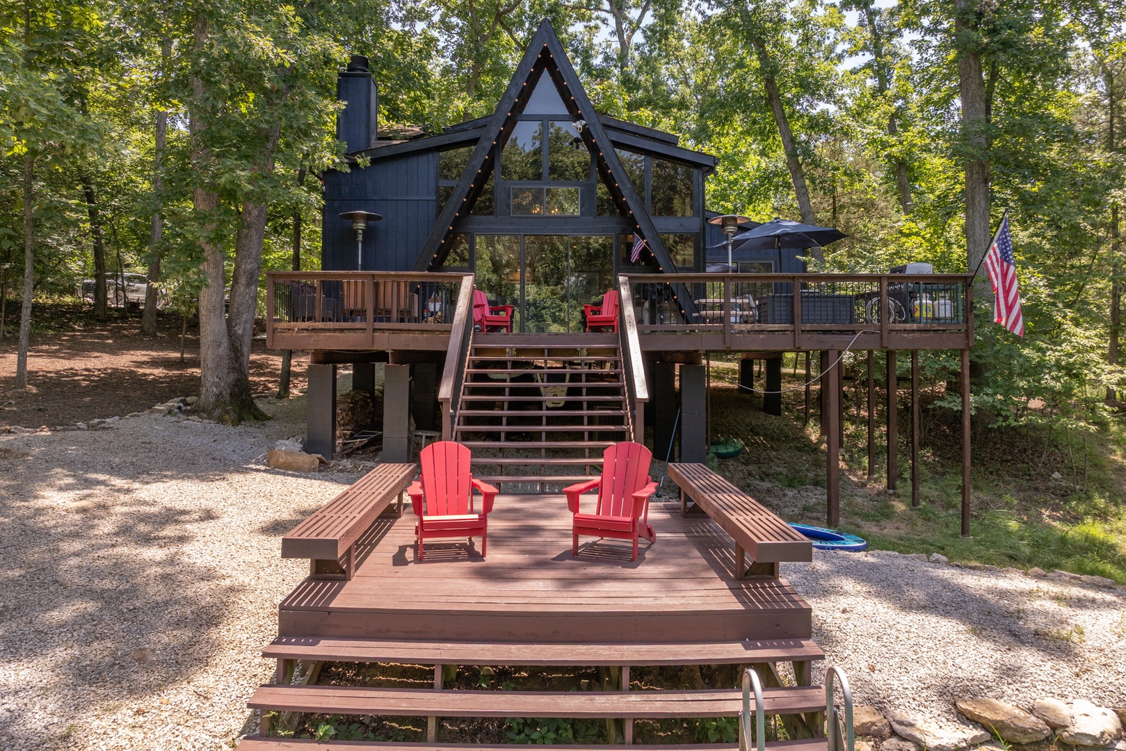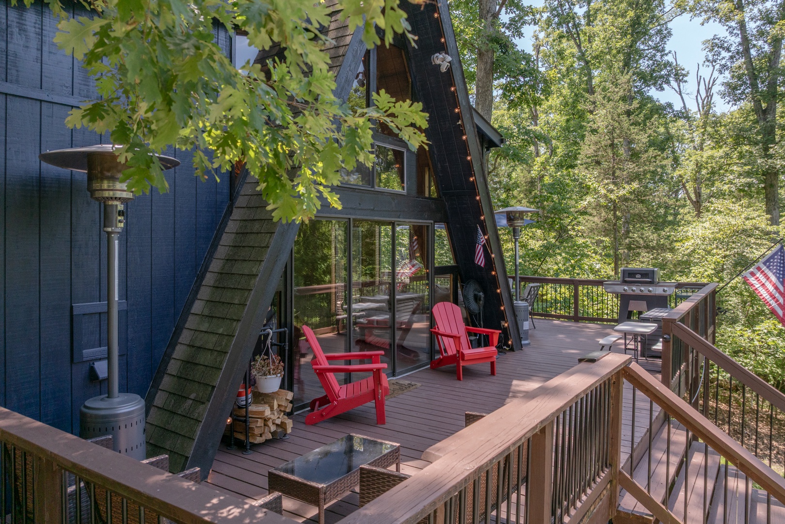 Step outside to enjoy the large deck complete with outdoor furniture, a gas grill, and propane heaters for year-round enjoyment. Stairs lead down to your private dock, where you can swim, fish, or simply take in the view. A fire pit by the shoreline adds to the charm, offering the perfect spot for evening s’mores and stargazing. Located near Lake Aspen, this chalet offers easy access to all of Innsbrook’s amenities while providing a private, peaceful escape. Whether you're looking to relax or explore, this is your ideal home away from home.
