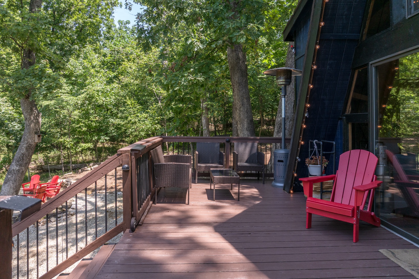 • Expansive back deck with outdoor furniture, gas grill, and propane heaters