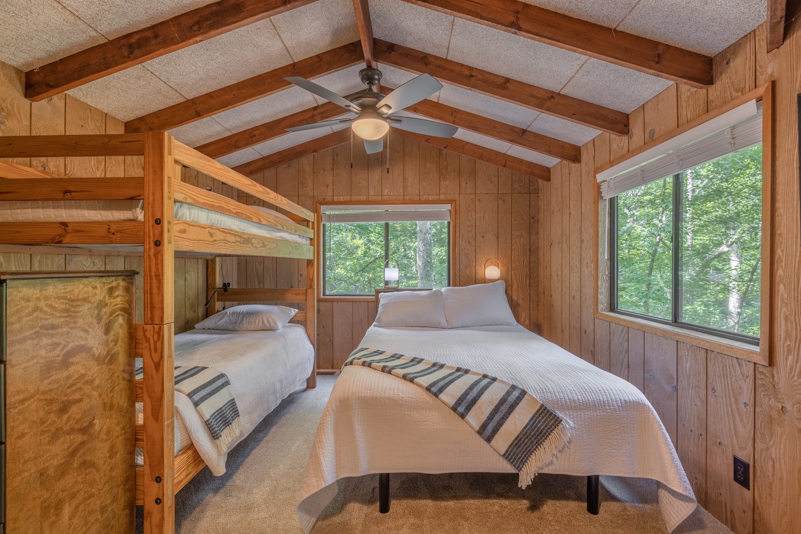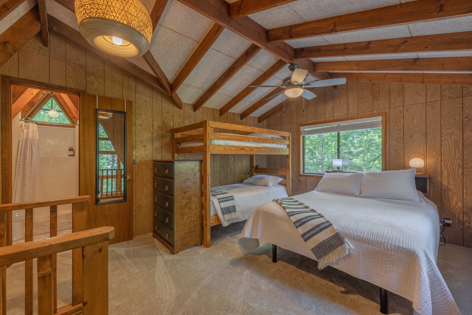 • Loft area – 2 twin bunk beds, 1 queen bed and 1 queen air mattress, plus full bath