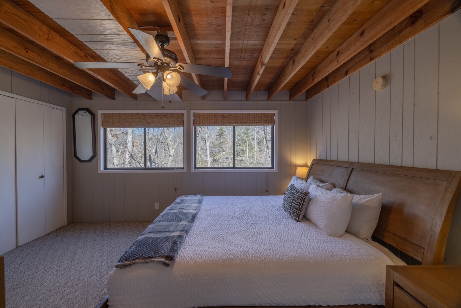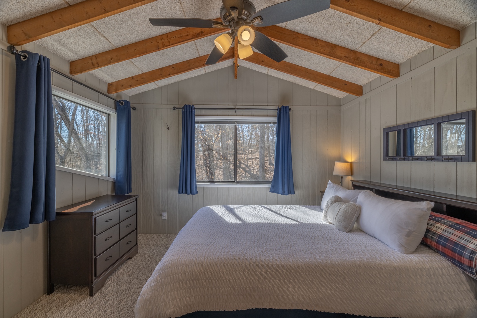 *Primary Bedroom: Located on the main level, the king-sized bed offers an oasis of relaxation with crisp linens and a serene atmosphere. Wake up to the tranquil sounds of nature and the comfort of your private space.
