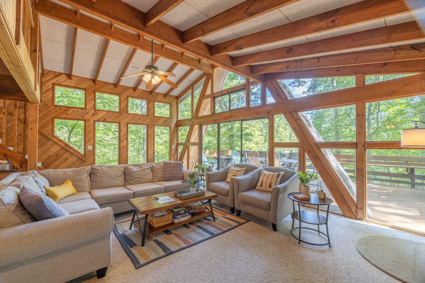 Welcome to your perfect lakeside escape at Innsbrook Resort! Nestled along the peaceful shores of Lake Sycamore, this beautiful 2-bedroom, 2-bath chalet offers the ideal blend of rustic charm and modern comfort. With space to sleep up to 7 guests, it’s the perfect retreat for families, couples, or friends looking to relax and reconnect with nature.