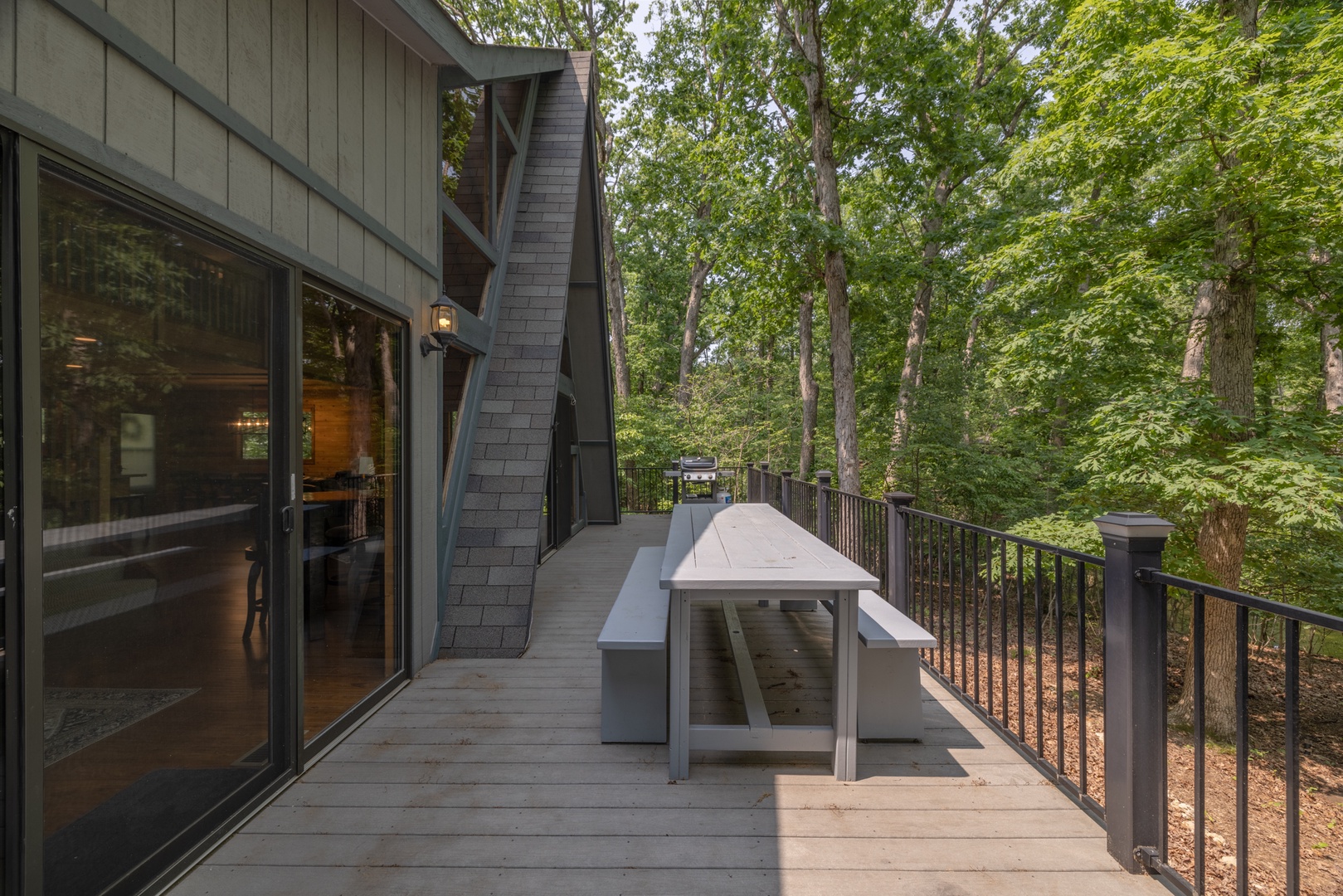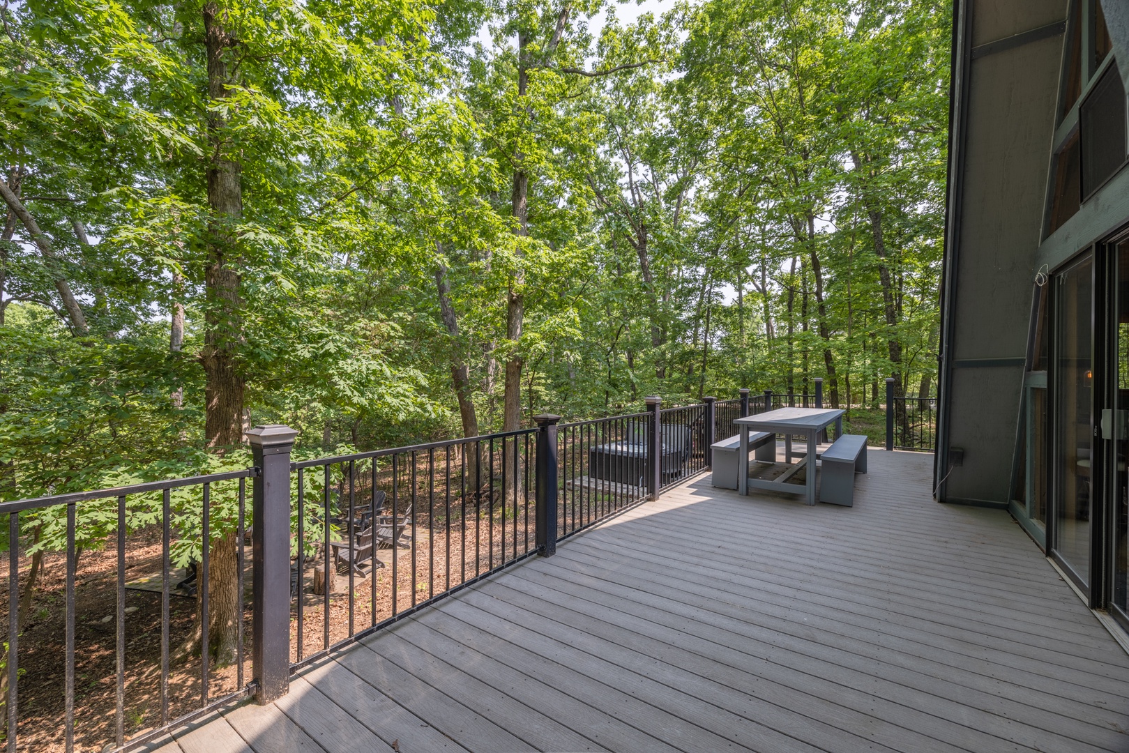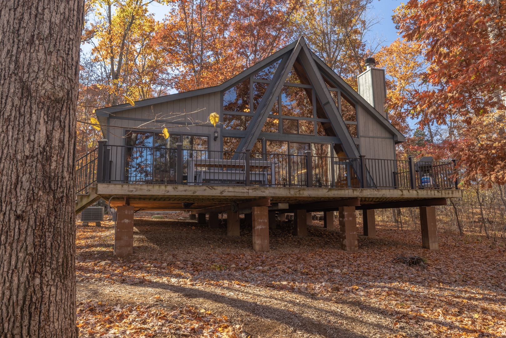 This chalet hidden in the woods is Innsbrook living at its best! With 1650 square feet of open, airy living space, you will have everything you need for a fantastic getaway. A private hot tub and outdoor fire pit overlook Lake Turrach, and the custom back deck has plenty of seating and a gas grill available for use.