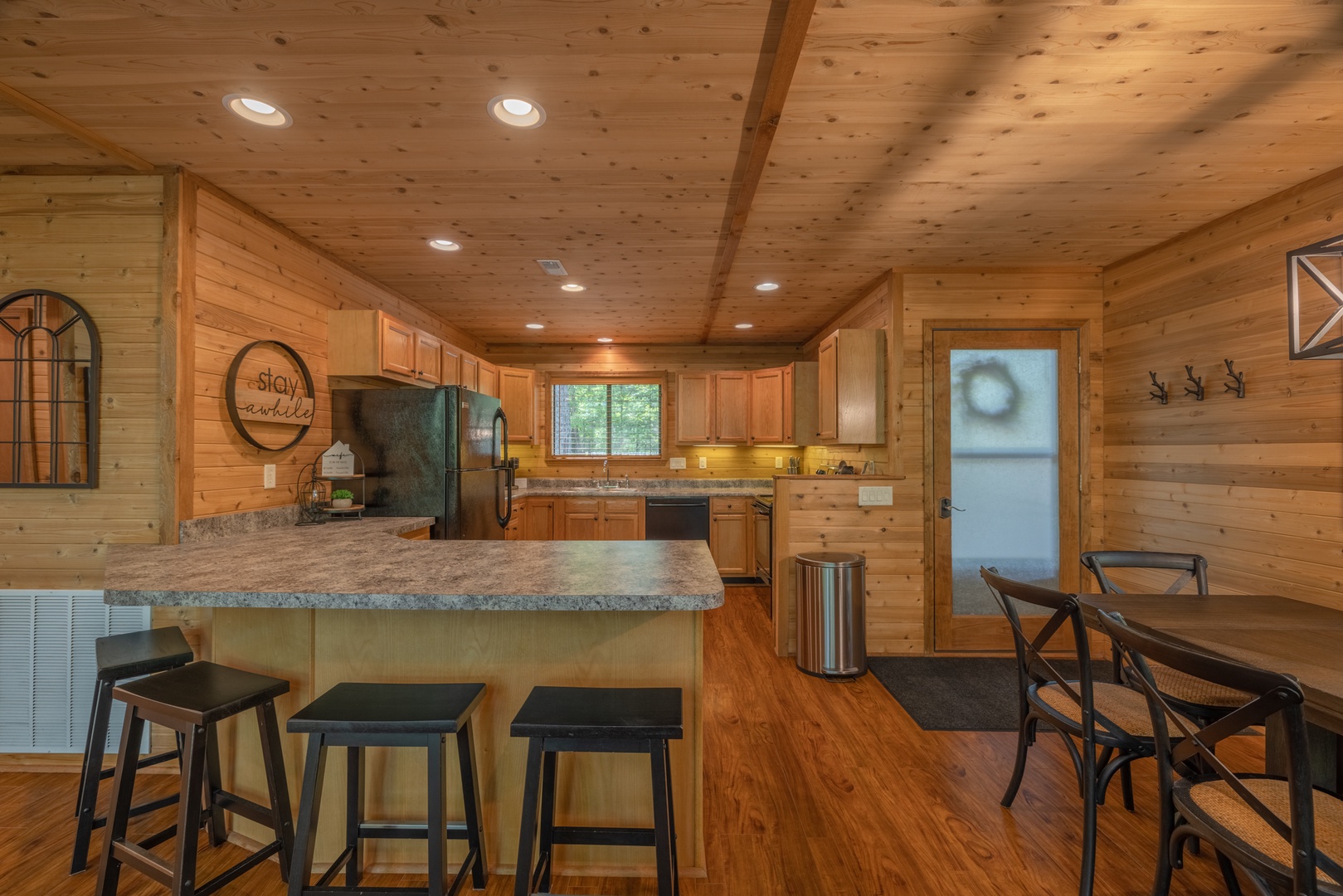 When it comes to cooking, we have what you need for any meal, anytime! Whether you are a culinary expert or frozen food guru, the kitchen is packed with everything you need for breakfast, lunch, and dinner preparation. With an expansive breakfast bar with barstool seating, your guests can keep the cooking champion company while they whip up their favorite vacation treats. If you are looking to get away from it all, the Hideout in the Woods is the perfect lakefront escape, anytime, any season!