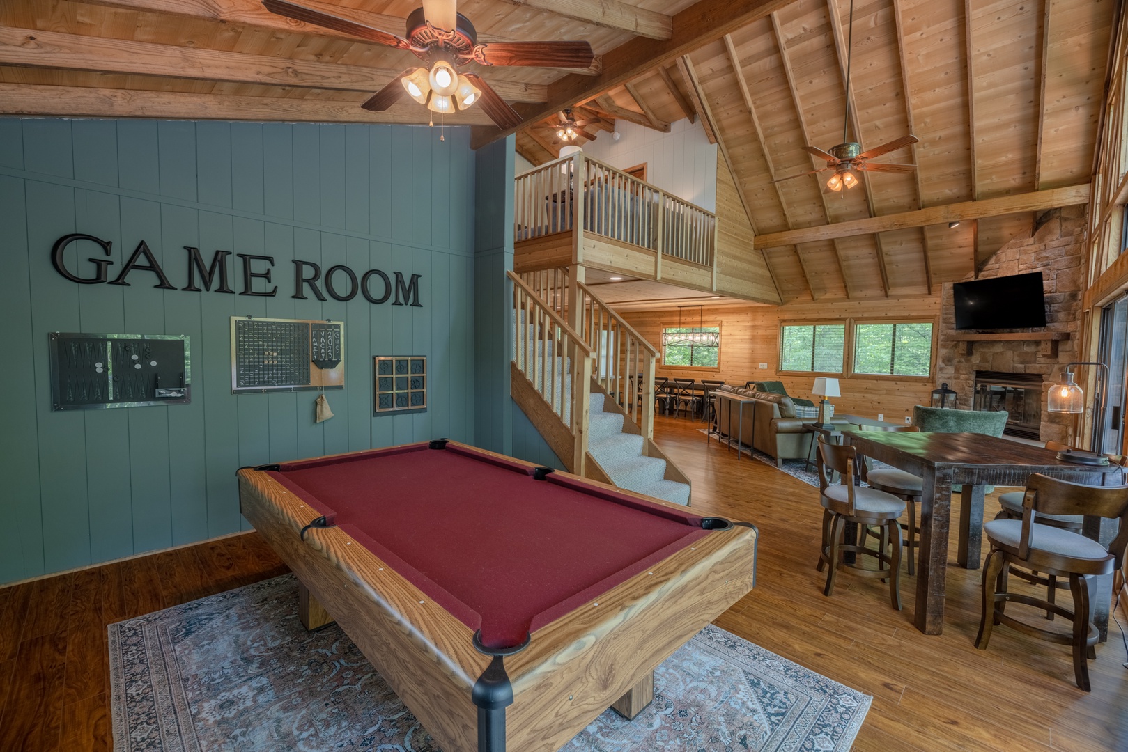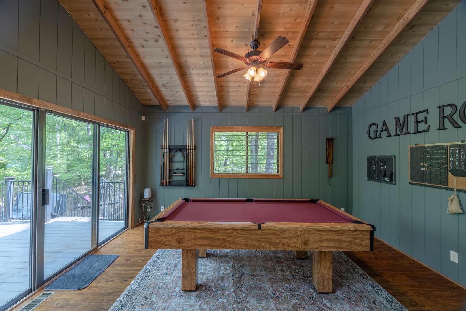 • Game Room area on the main level – pool table, oversized tick tack toe and scrabble, and more!