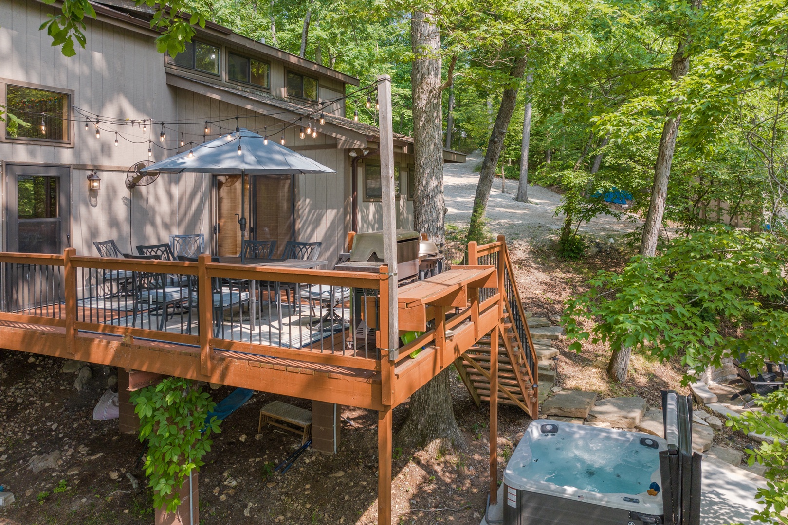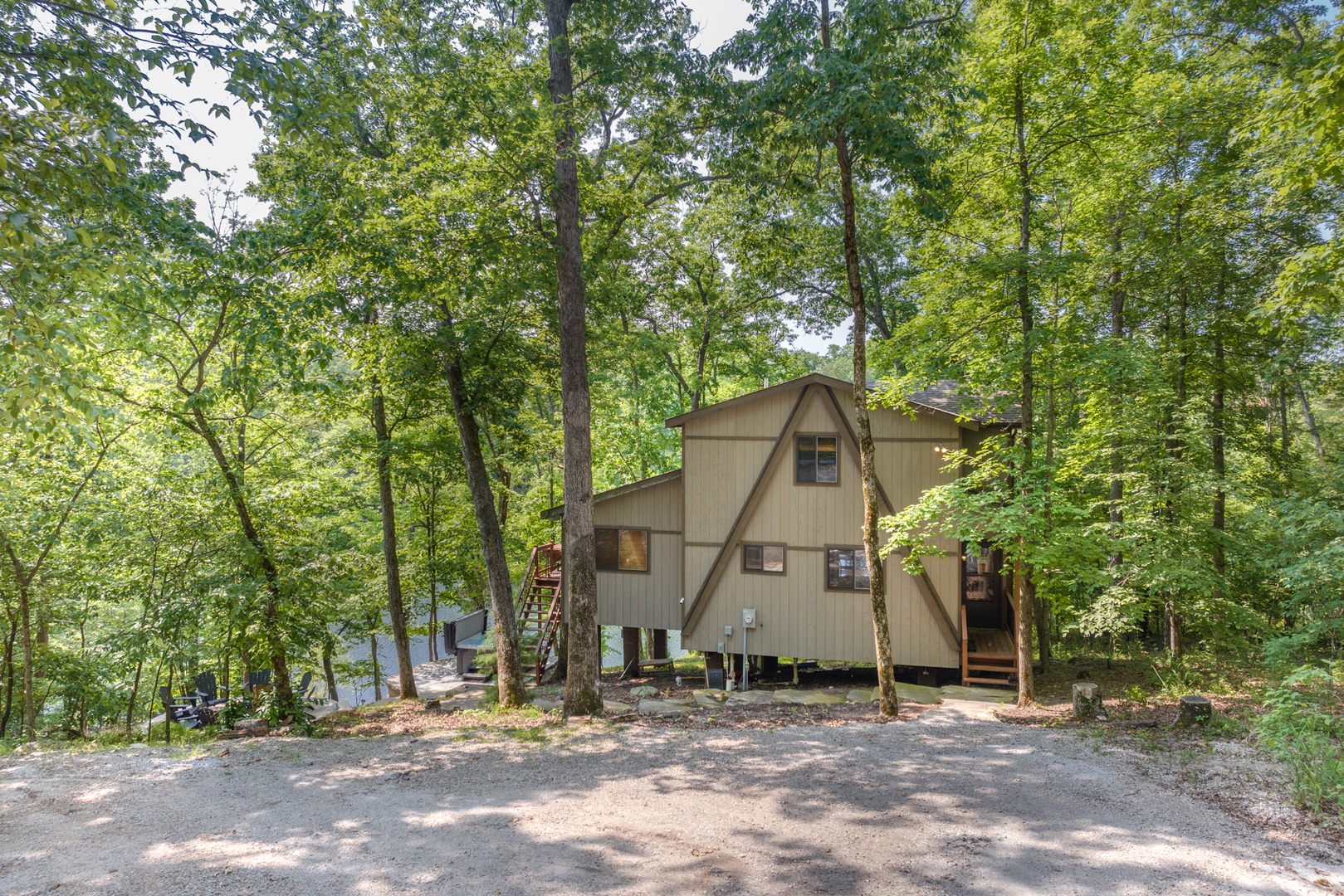 Welcome to your dream home-away-from-home! This rustic, charming chalet is perfectly nestled amid the wooded forest, providing treehouse views of the beautiful, 19 acre Kitzbuhl Lake below. Only steps away from the shoreline, you and your guests have premier lake access, complete with a private beach and spacious dock to enjoy a relaxing day by the water. Roll out the lily pad and lounge in the lake, or paddle through the water on one of the many water toys provided. Everything you need for an impeccable lake vacation is at your fingertips!