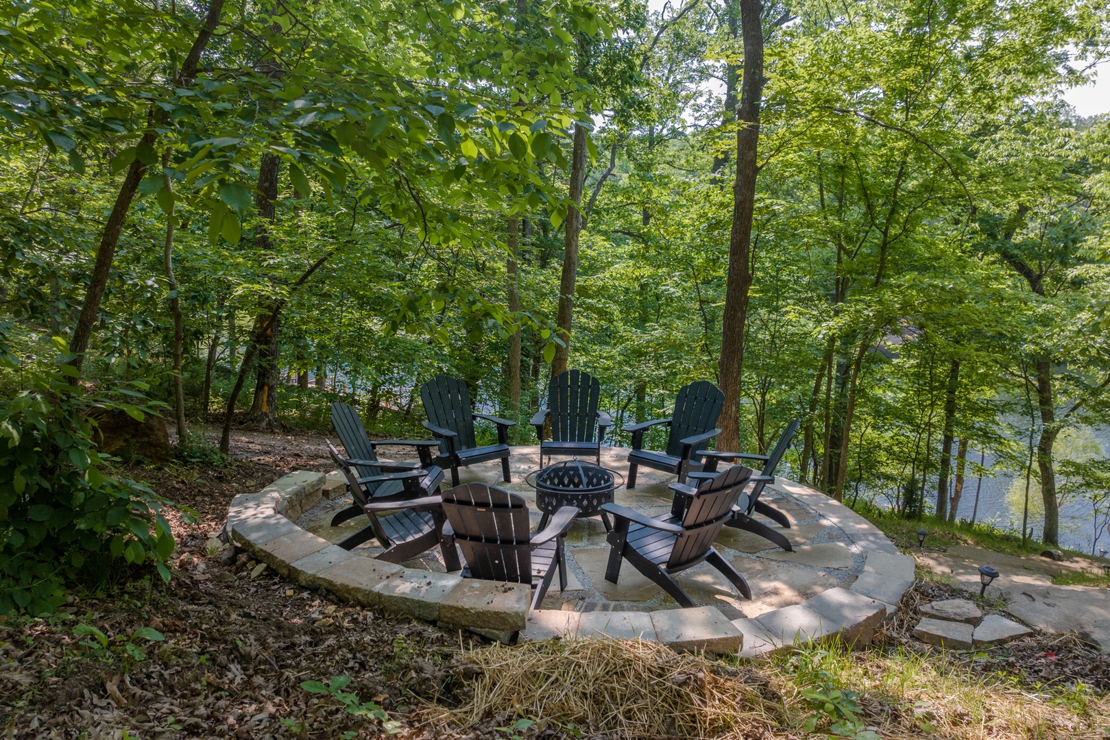 The comfort of the indoors will make you feel at home, with its warm interior colors, cozy stone wall fireplace, and walls of floor to ceiling windows surrounding the open living area. The spacious kitchen is fully stocked for cooking and is outfitted with updated custom cabinetry, stainless steel appliances and barstool seating. Dine indoors or outdoors, as both areas have plenty of seating and gorgeous views of the unique Innsbrook landscape.
