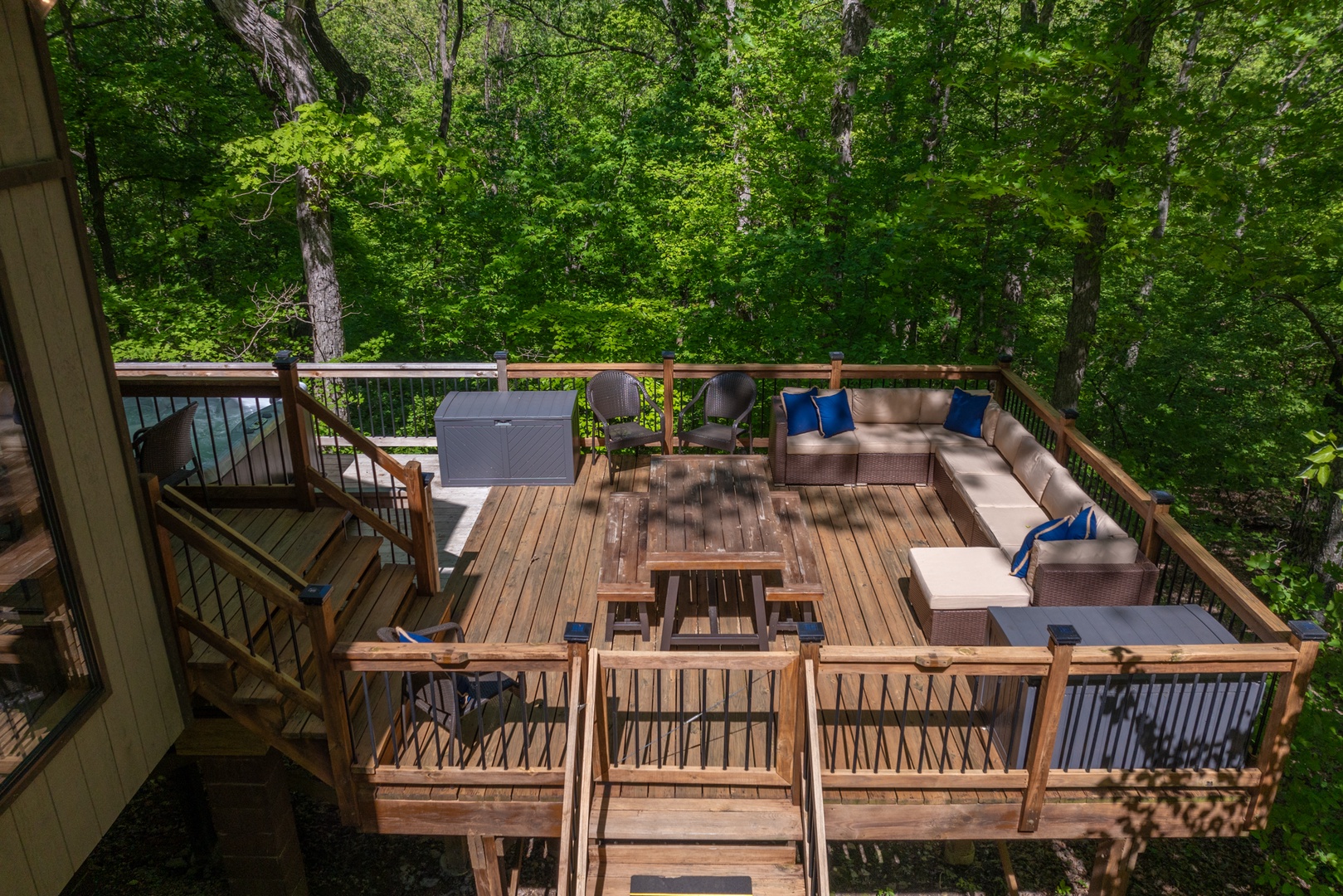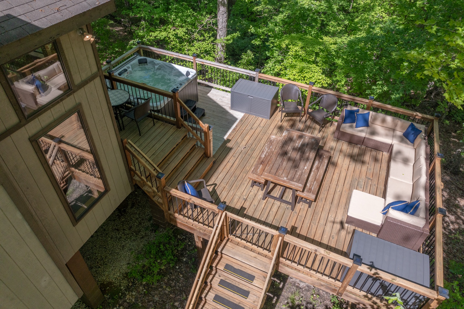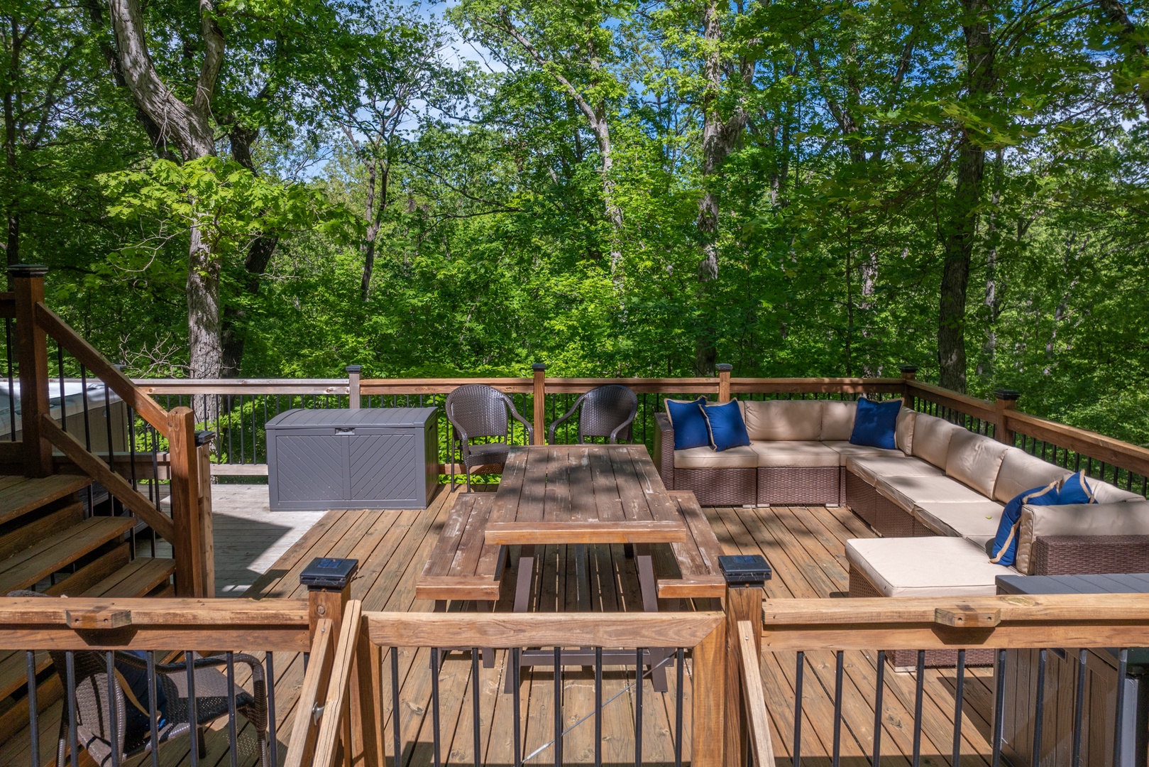 Once outdoors, enjoy an oversized deck that accommodates your group with plenty of seating, or sit back and relax in the hot tub. While the sun is out, take full advantage of the surrounding area by exploring on a nearby hiking trail, casting a line in a nearby lake, or taking a dip in Innsbrook largest body of water, Alpine Lake. When it’s time to settle down for the evening, enjoy a peaceful evening under the stars on the deck, or cuddle up by the outdoor fire pit to soak up the uninterrupted Innsbrook skyline.