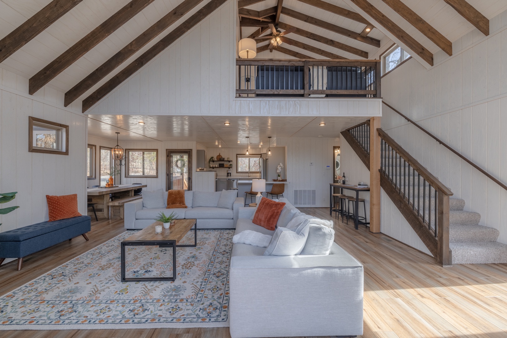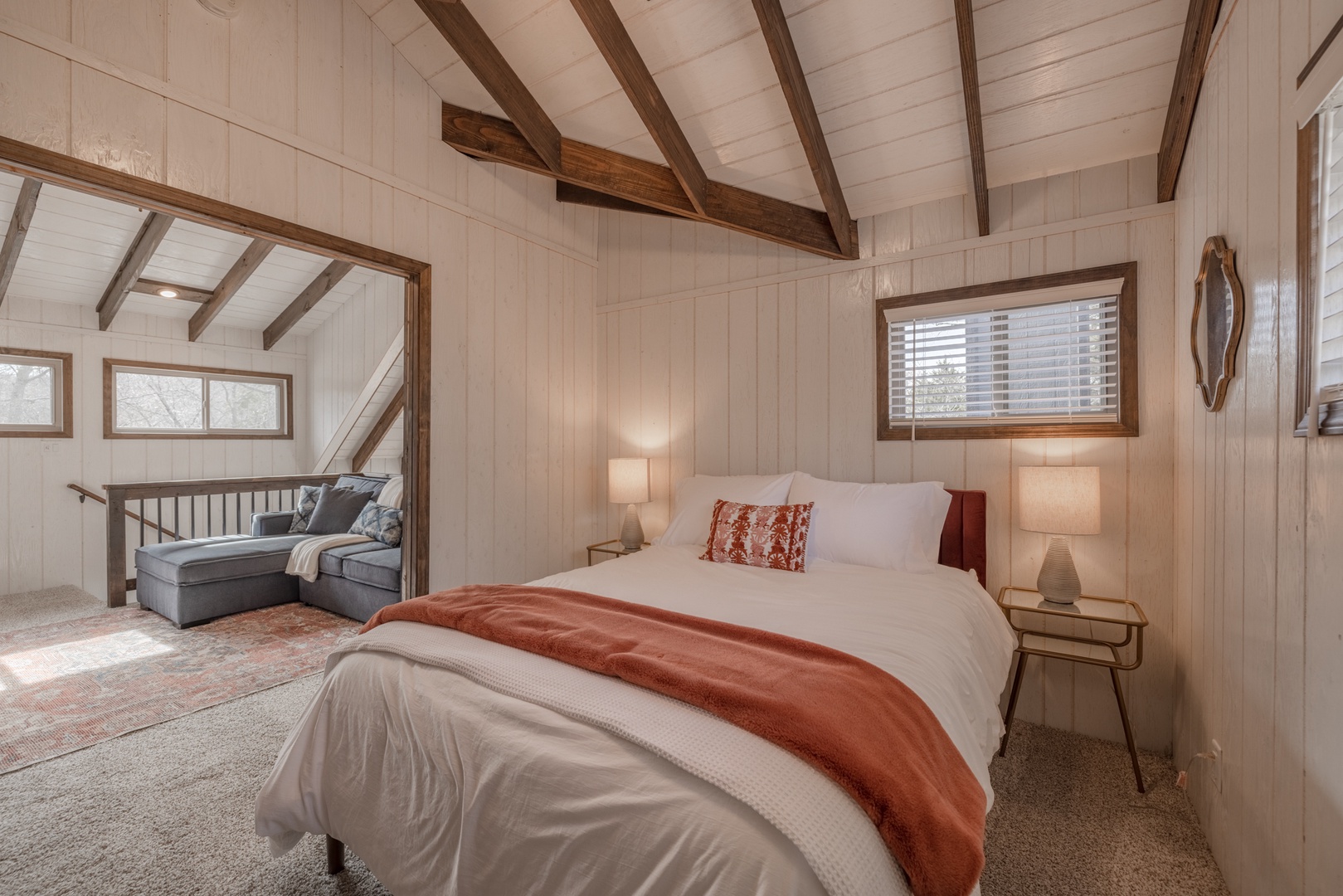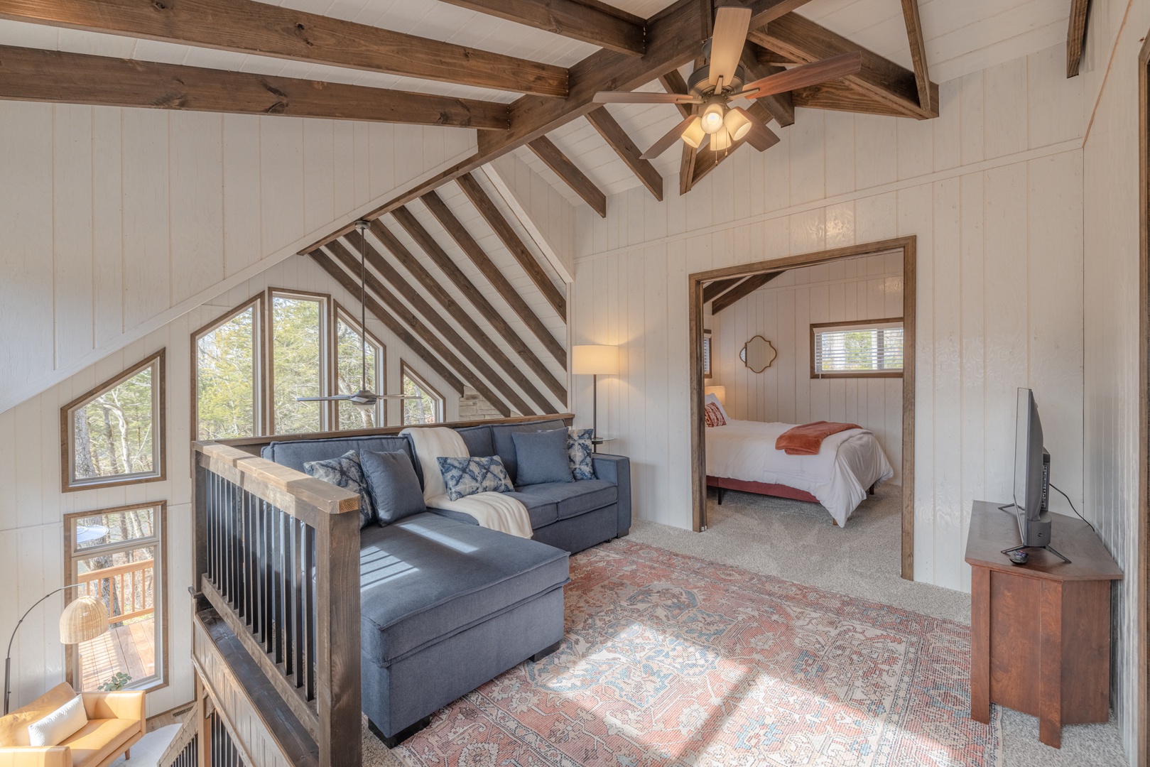 • Loft area – comfortable seating area, pullout sleeper sofa, TV, and easy access to the upstairs full bathroom