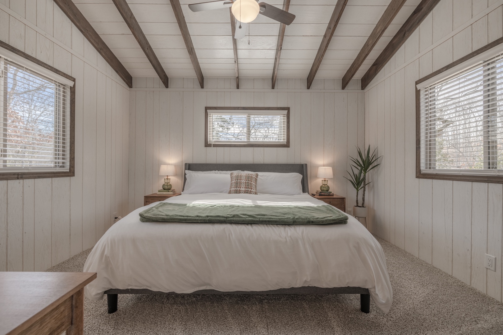 • Private Primary bedroom on the main level with 1 king bed and a private entrance to the main level full bathroom.