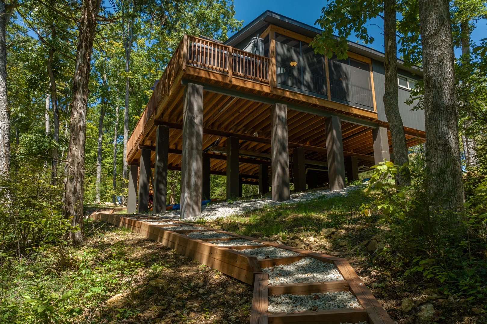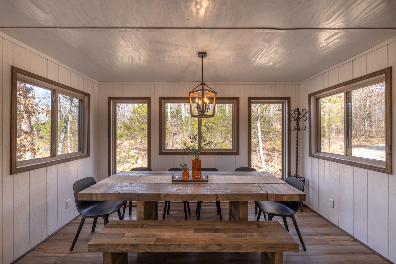 Take a trip to a secluded lakefront oasis! You will feel a million miles away from it all, yet close to all of Innsbrook Resort’s premier resort-style amenities. The Frieden Hideout is your modern day treehouse getaway that was thoughtfully designed to make you feel connected to the outdoors with expansive windows and nature views decorating the walls in every square inch.