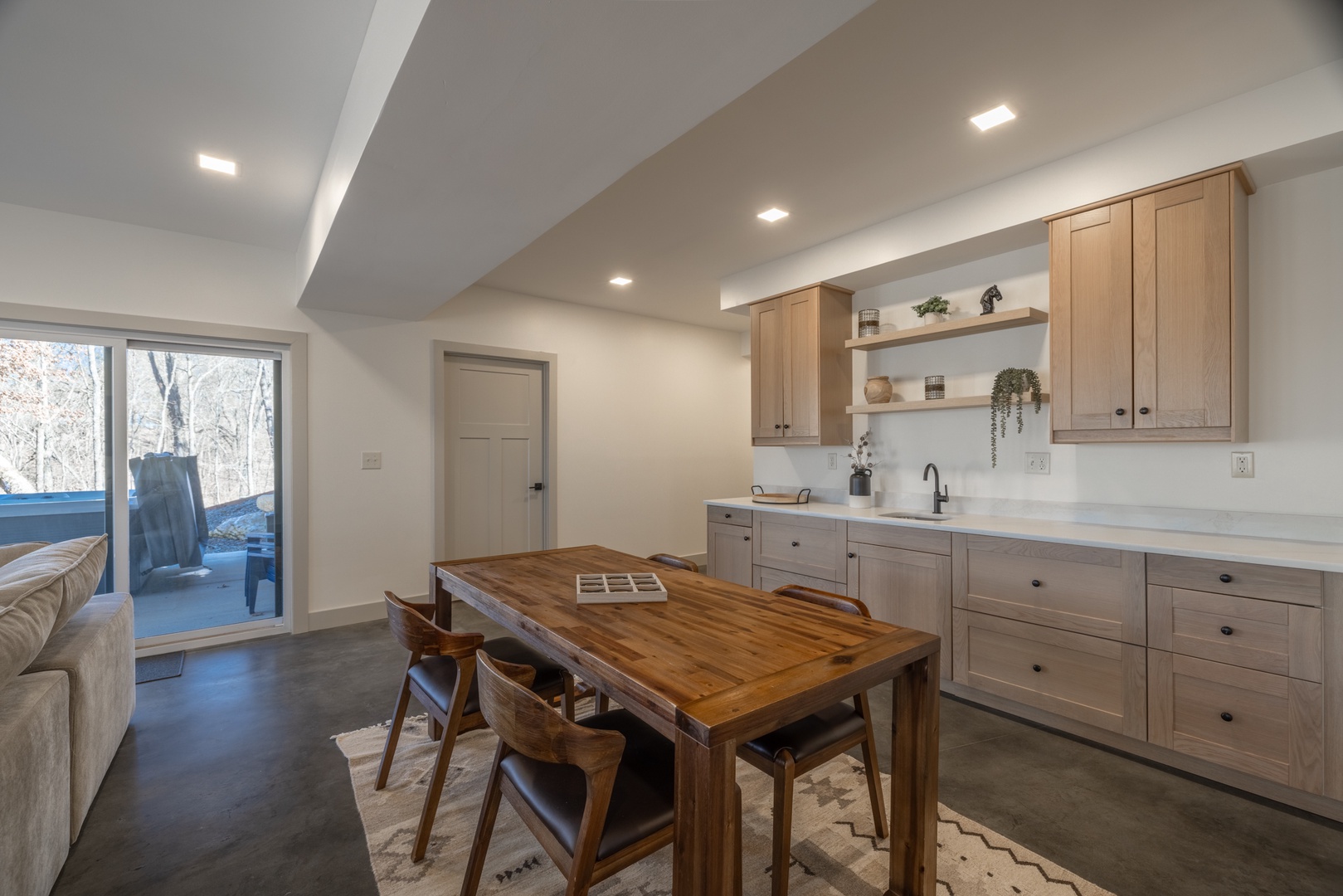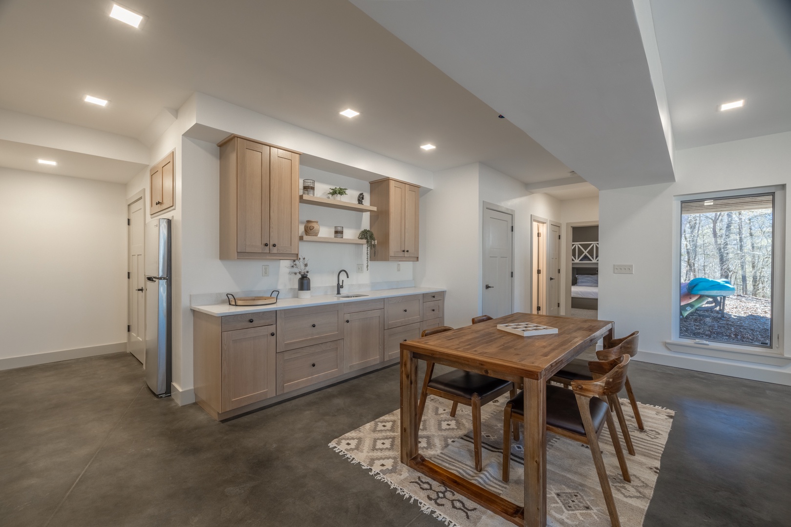 Our family loved the home, well designed to showcase the surrounding forestry. Very open concept yet had a family feel that made you feel right at home and allowed for family conversation. The bedrooms are all well laid out and beds were comfortable with plenty of windows overlooking the forest. We had a few items arise but the resort staff very promptly resolved and were very friendly, sweet & professional- all fantastic attributes! The lower level/ basement has games and leads to the hot tub which was clean and well kept. The fire pit area is not quite finished yet but looks like it will be very pretty once complete. We were provided a portable fire pit during our stay which we thoroughly enjoyed! Overall a great location and home. Will definitely be back~