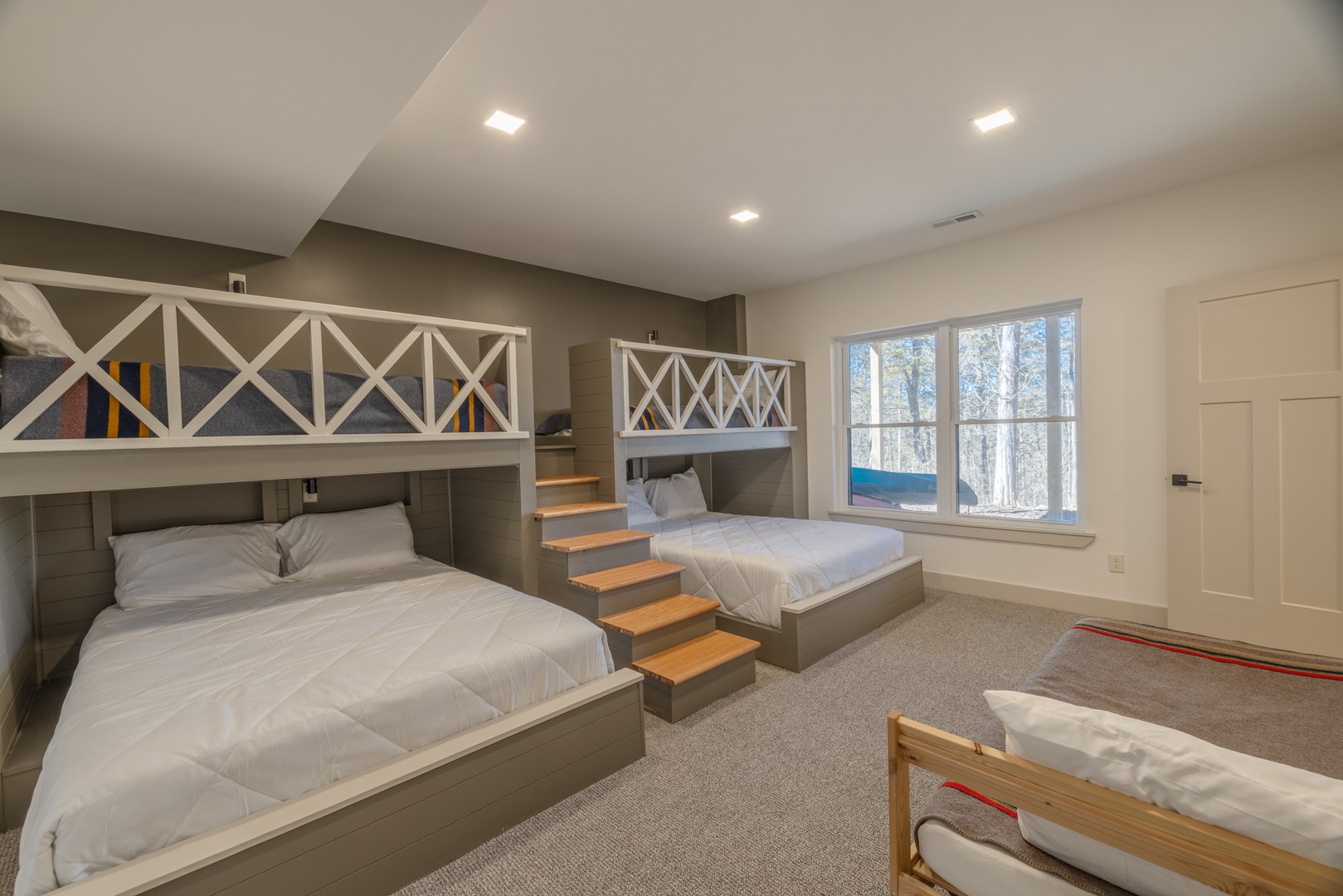 • Bedroom 4 - (located in lower level) 2 built in twin over queen bunk beds + twin bed