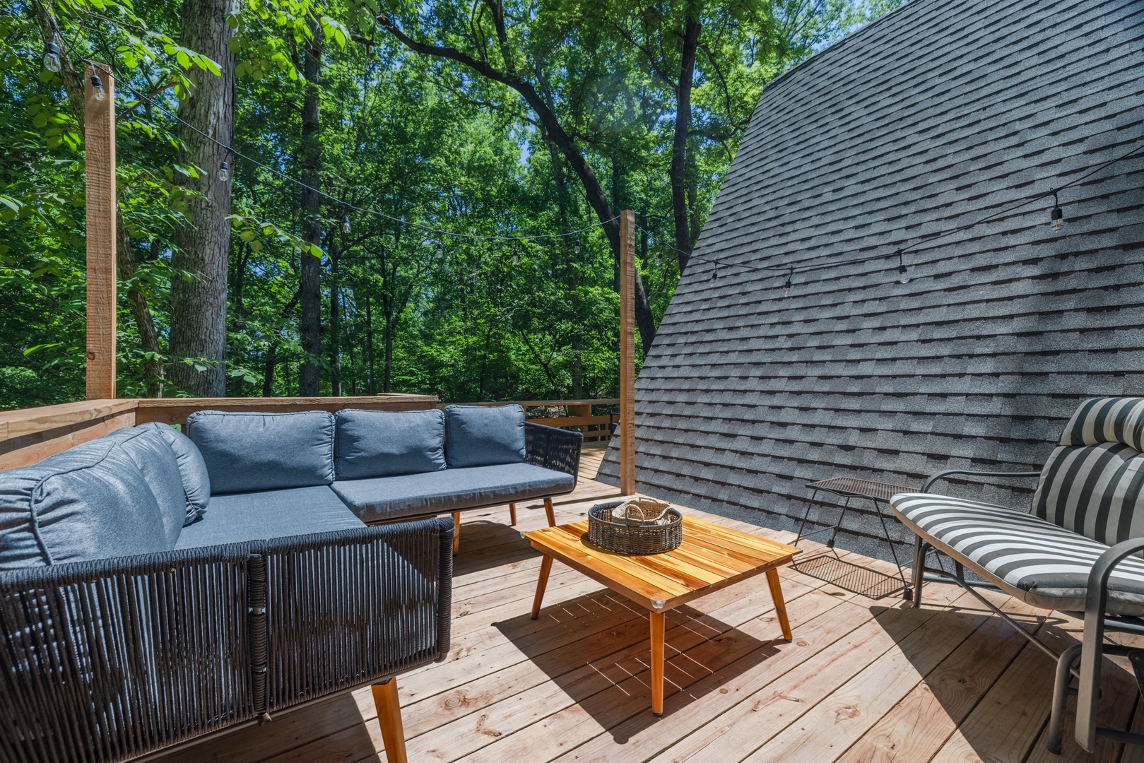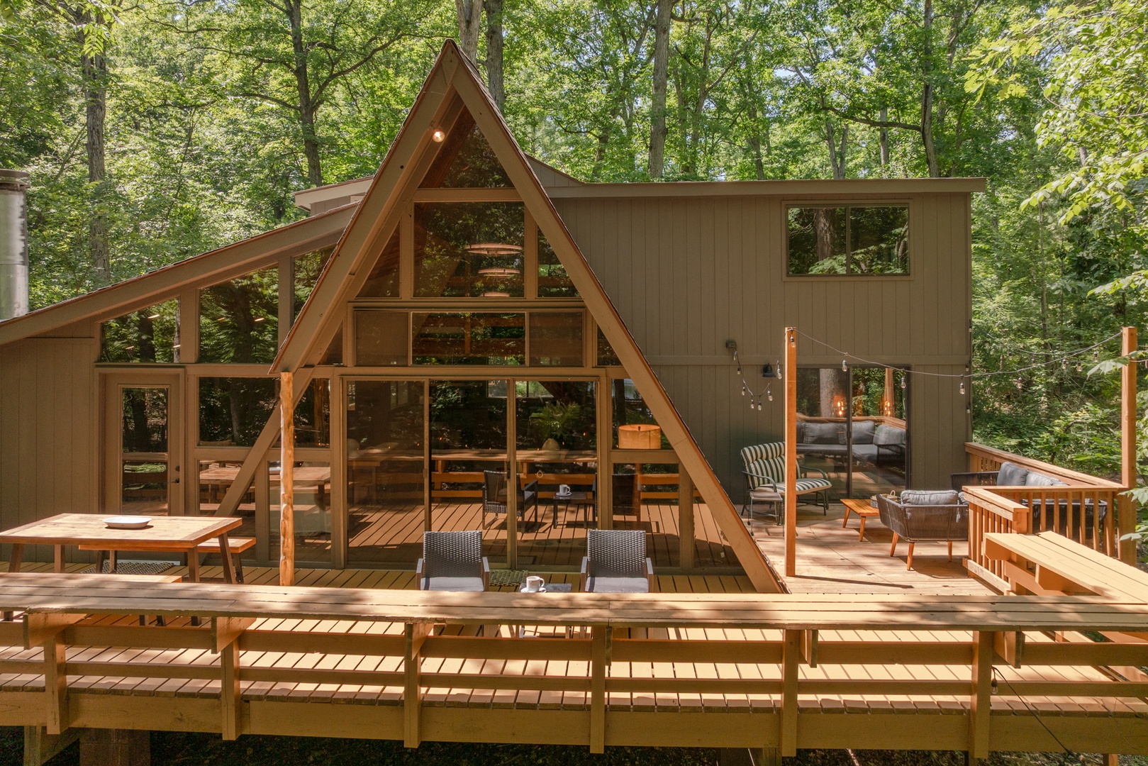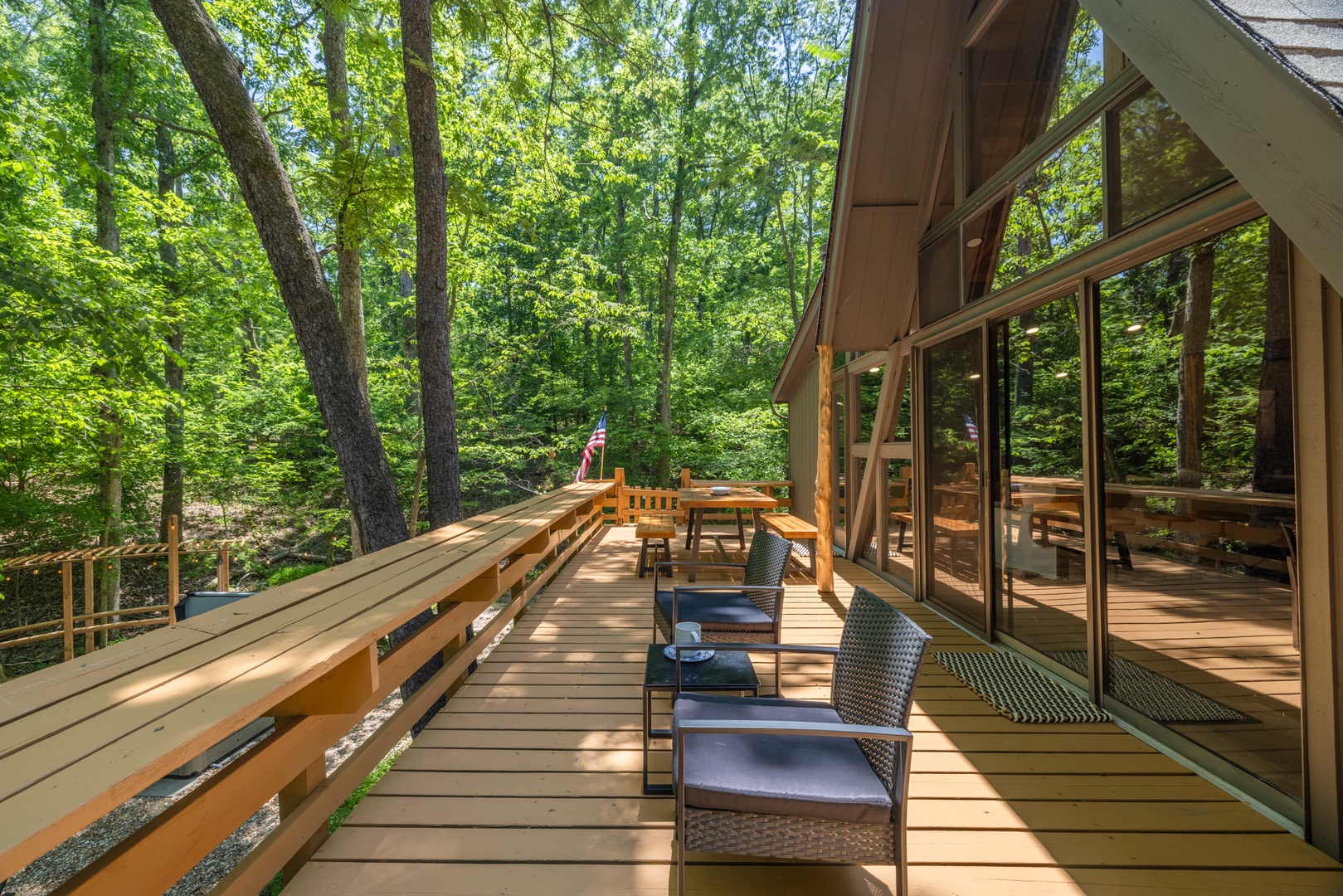 • Expansive deck with outdoor furniture, gas grill, and multiple sitting areas