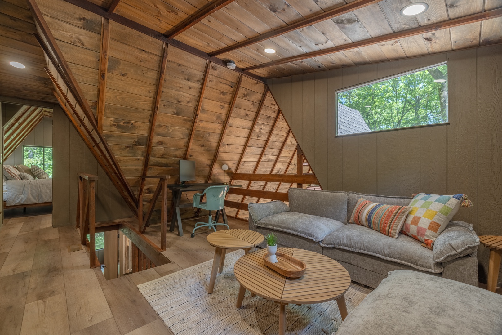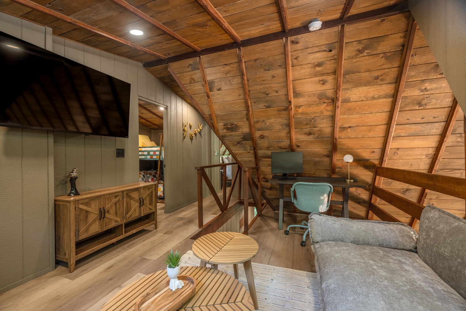 • Loft – cozy sitting area with a sectional, TV, and desk/office space, perfect for mid-day naps or a calm space to work remote
