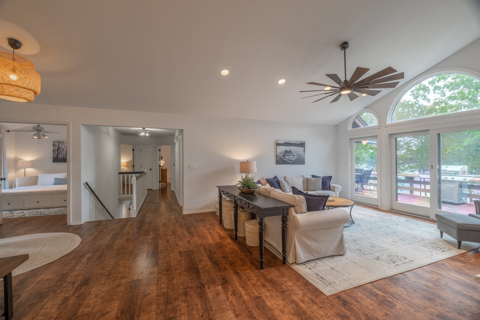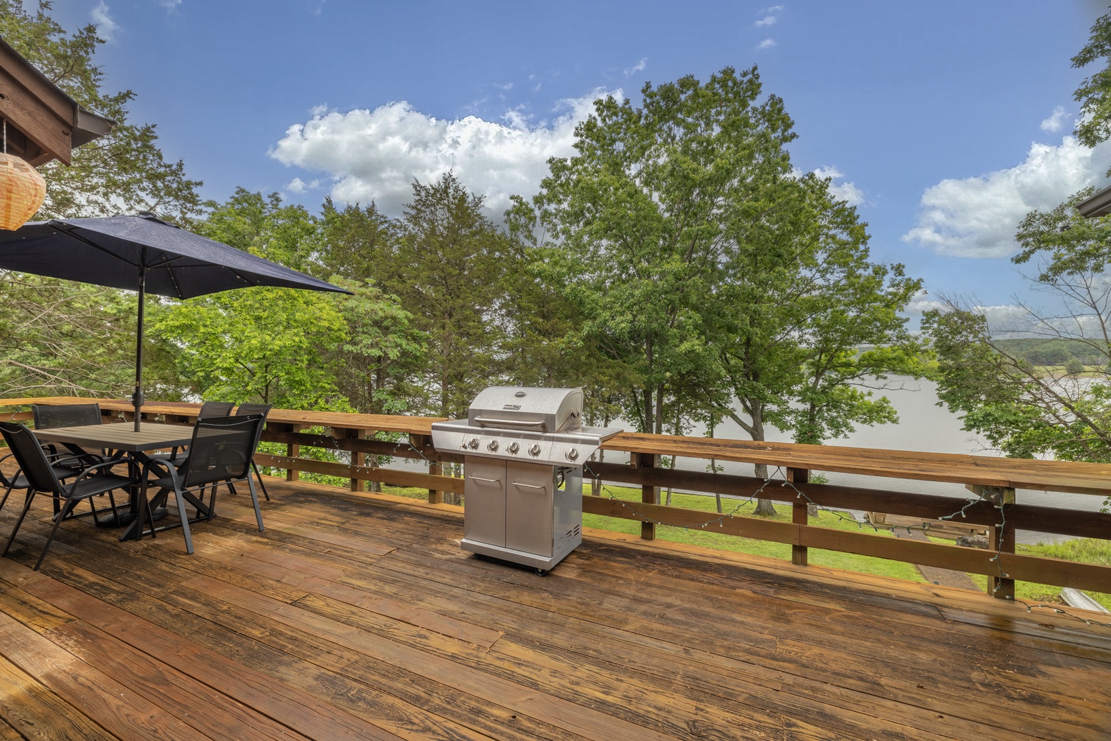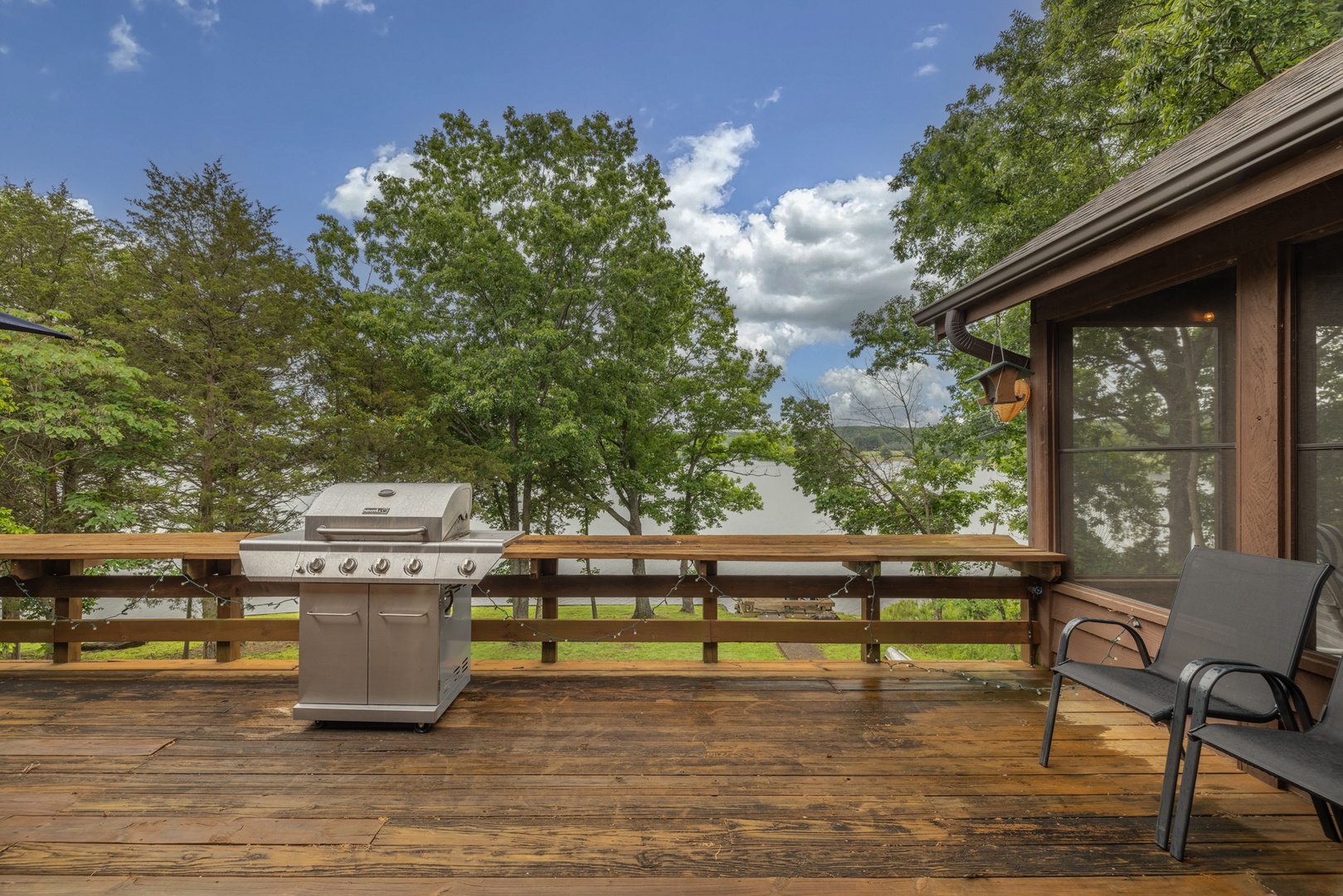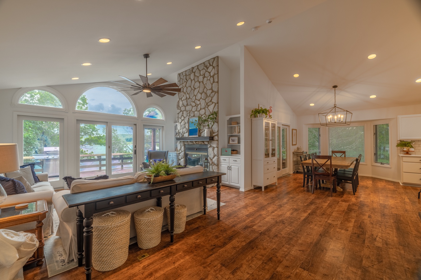 • Sliding glass doors off the main level living area lead to the spacious deck overlooking the lake