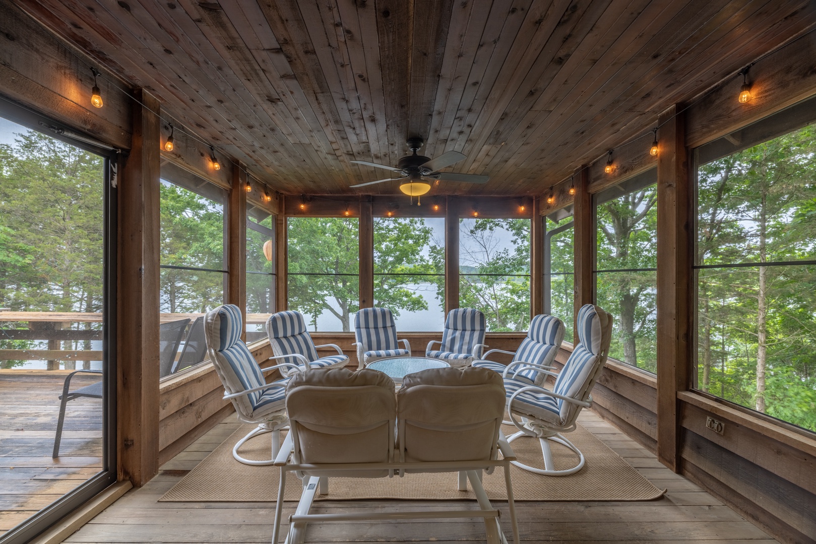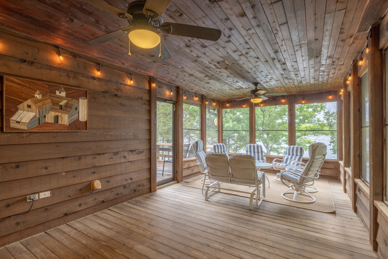 Outdoor living is just as impressive. Sliding glass doors off the main level open to a spacious deck overlooking Lake Aspen, ideal for grilling, dining, or relaxing. A beautiful screened in porch provides panoramic views of the surrounding nature year-round, and guests can enjoy the included water toys for endless fun on the water.