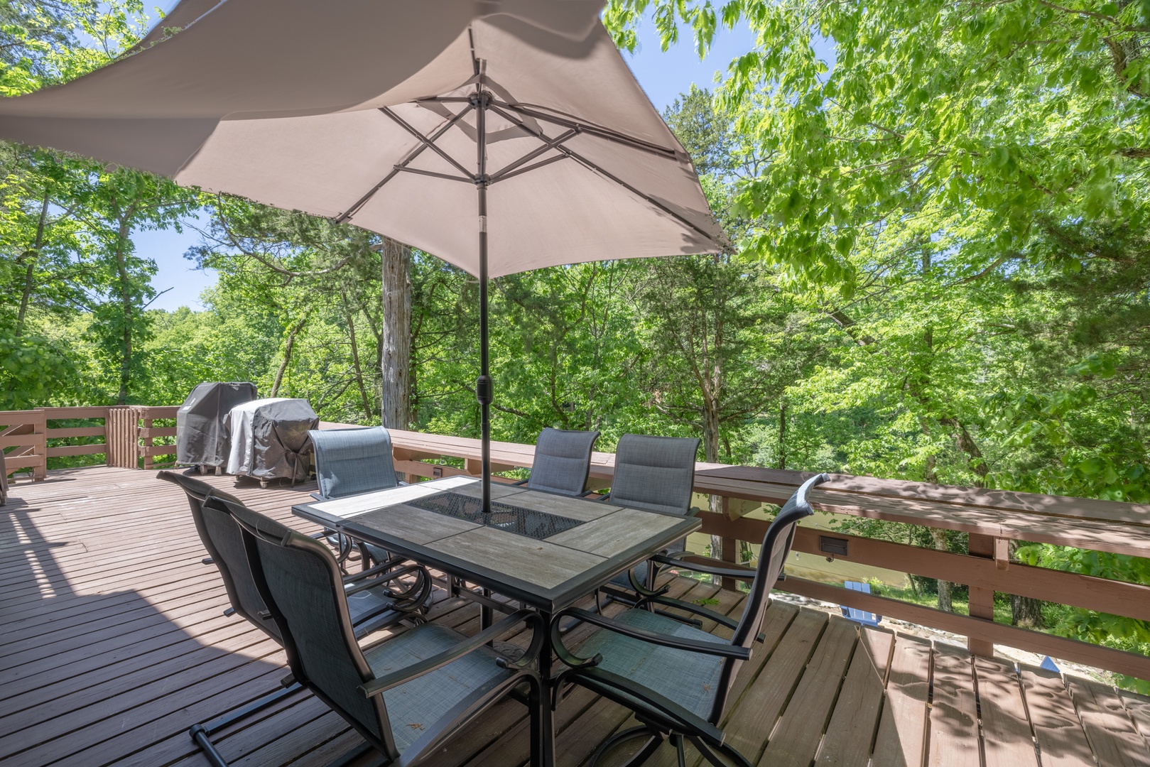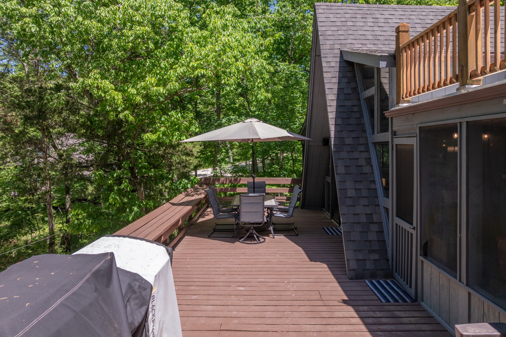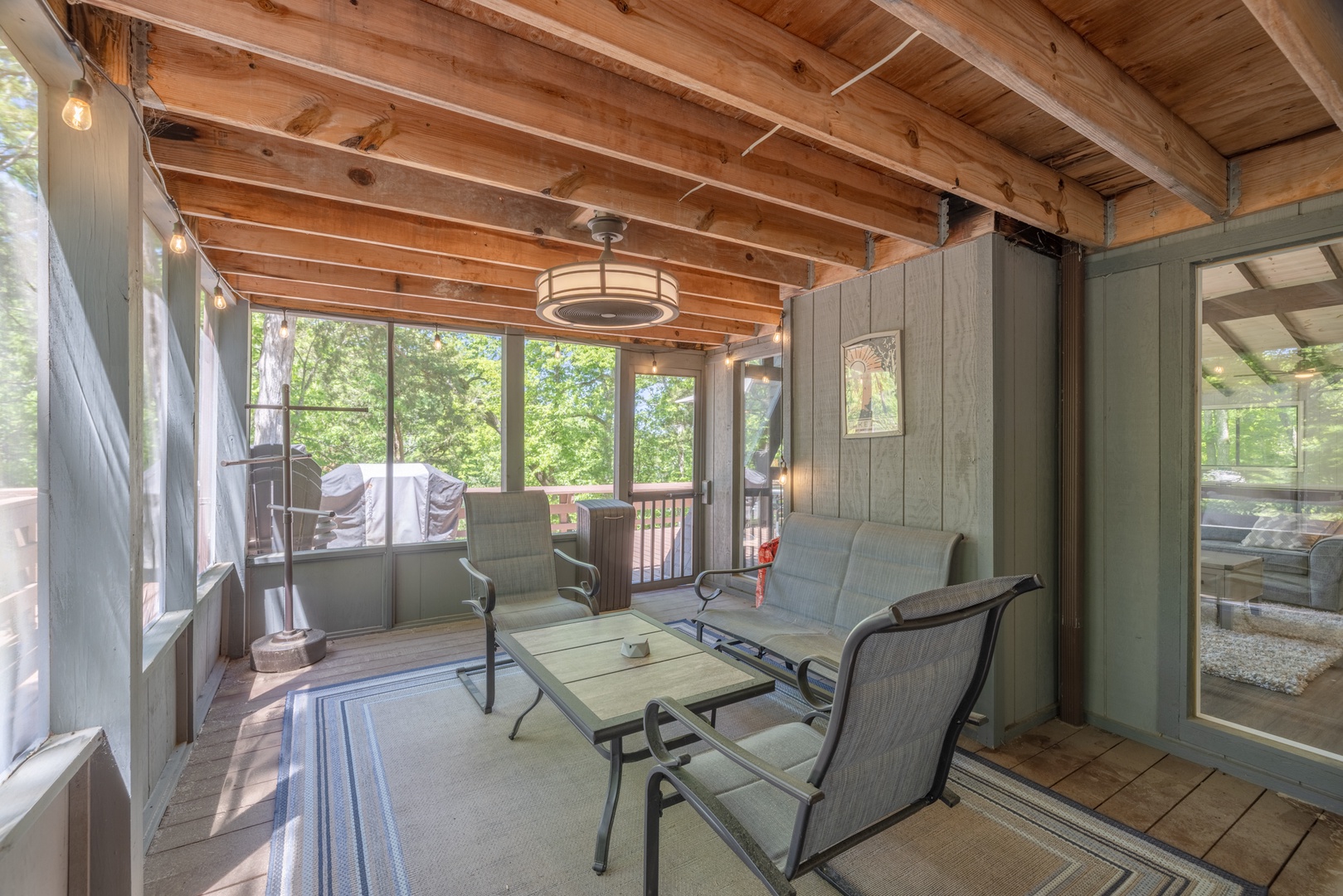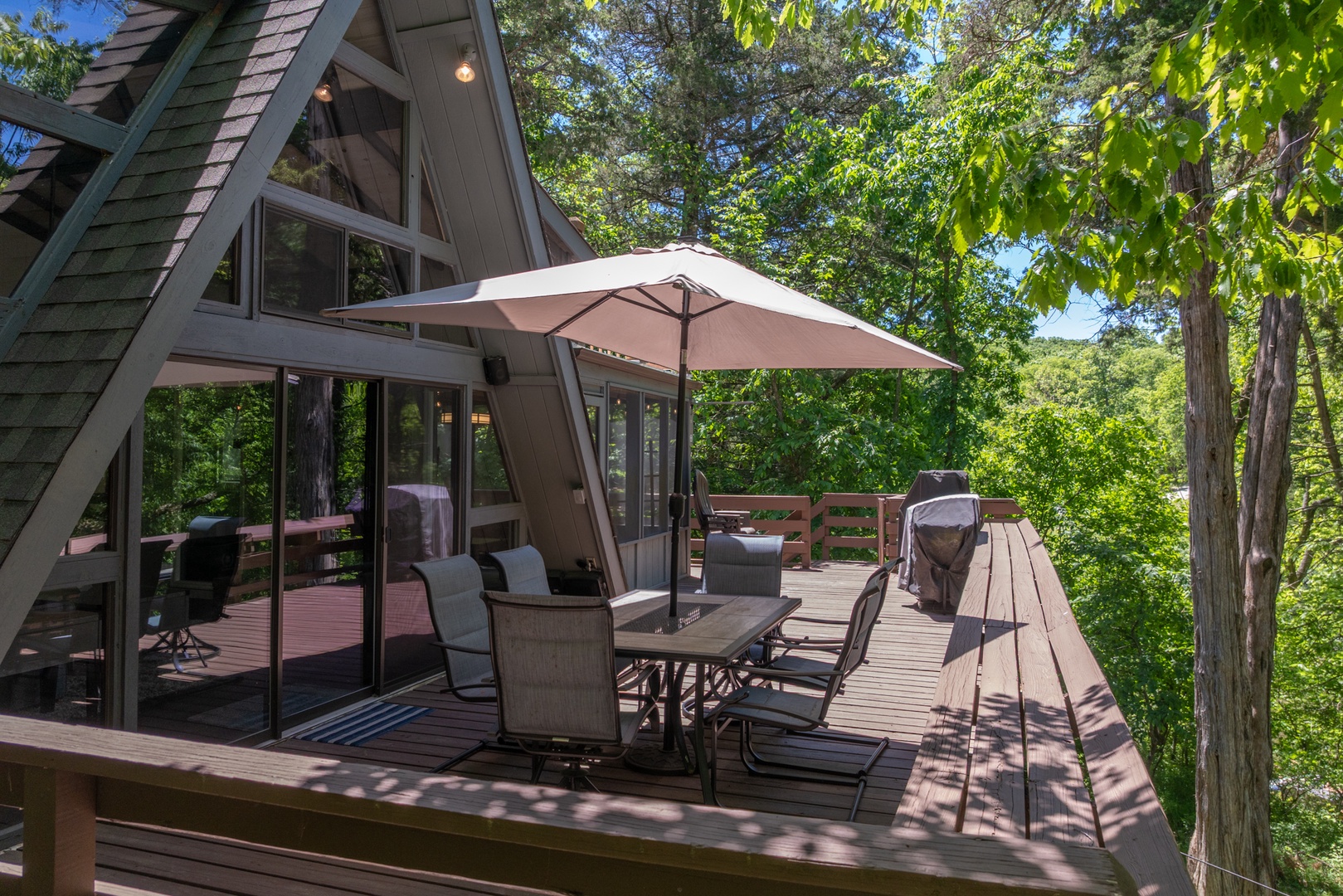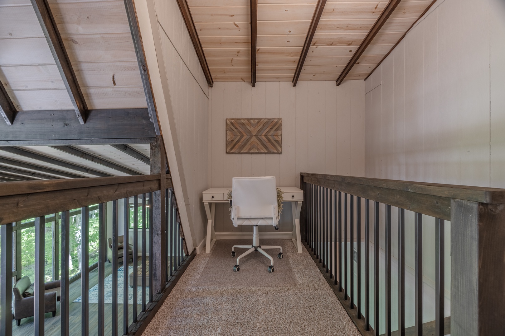 Step outside to enjoy the screened-in porch, a loft balcony overlooking the property, and a sprawling deck with outdoor furniture and a gas grill—perfect for morning coffee or sunset dinners. Down below, unwind on the porch swing or gather around the outdoor fire pit under the stars. For lake lovers, a private dock and lakeside seating await, along with water toys to enjoy endless fun on the water. Plus, you're just a 5-minute walk to the popular Lionshead Beach.