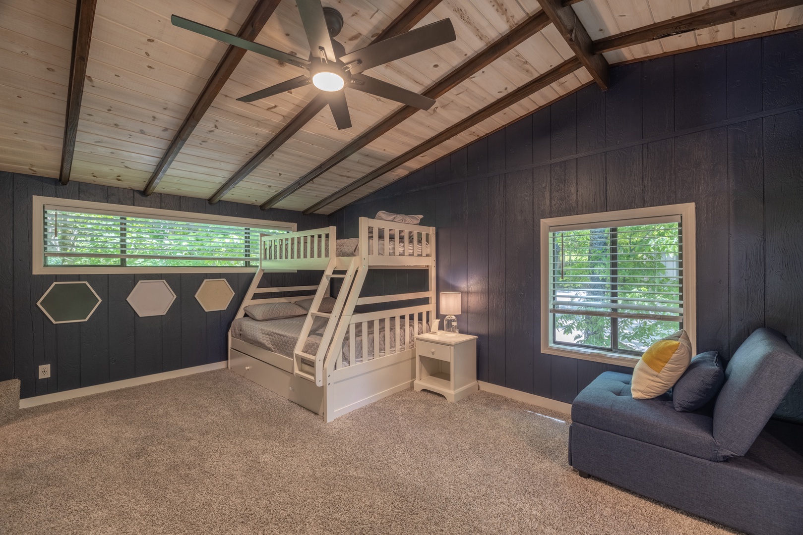 • Bedroom 2 (off of the loft) – twin over full bunk bed with trundle