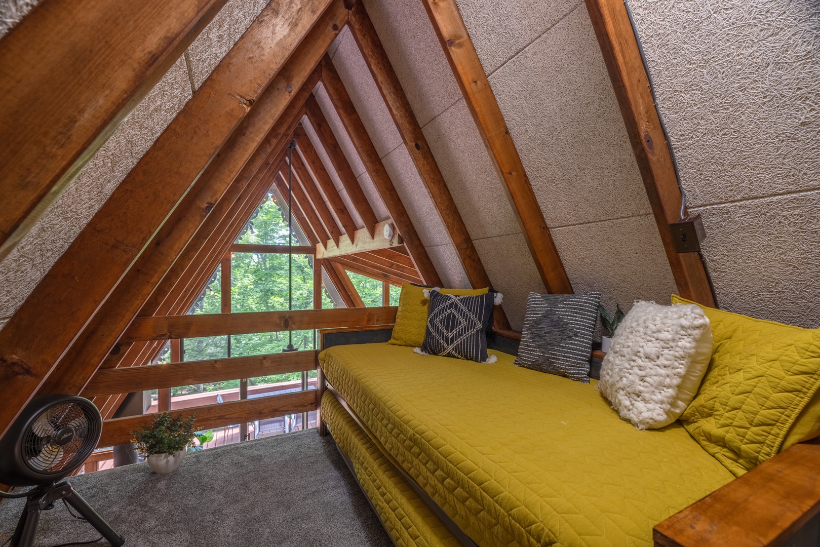 • Upstairs loft - 2 trundle-style twin beds, 1 queen bed