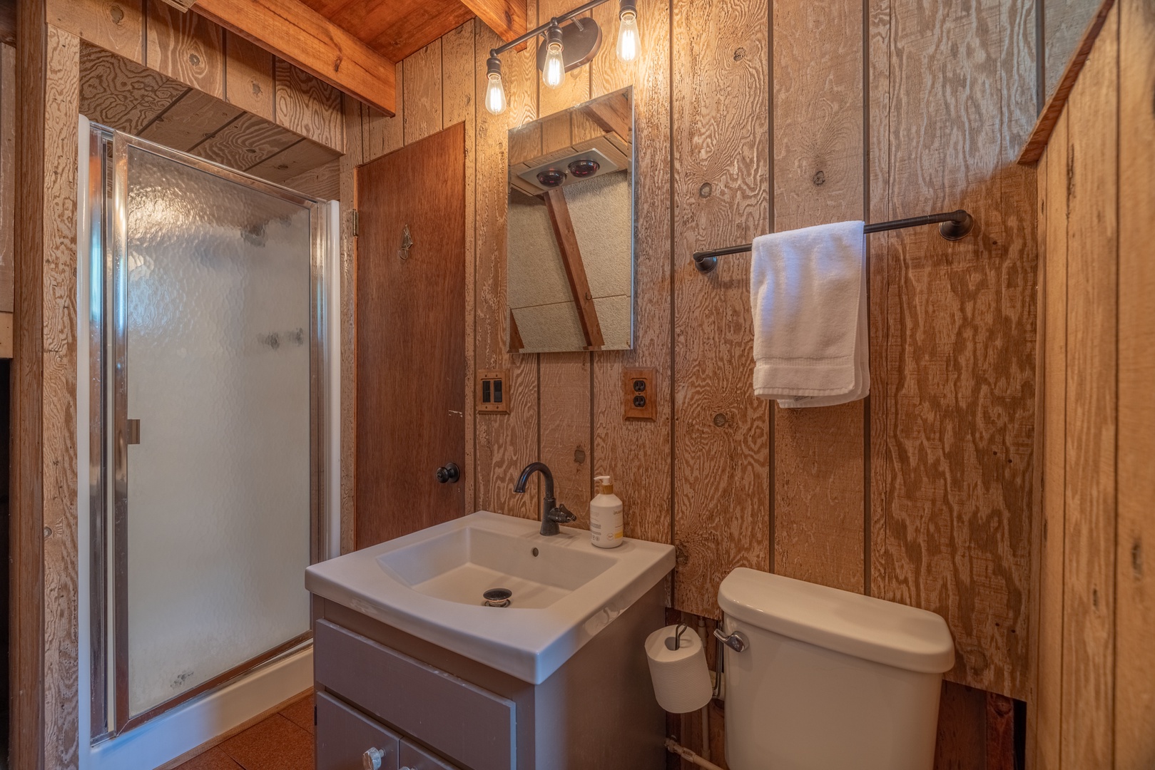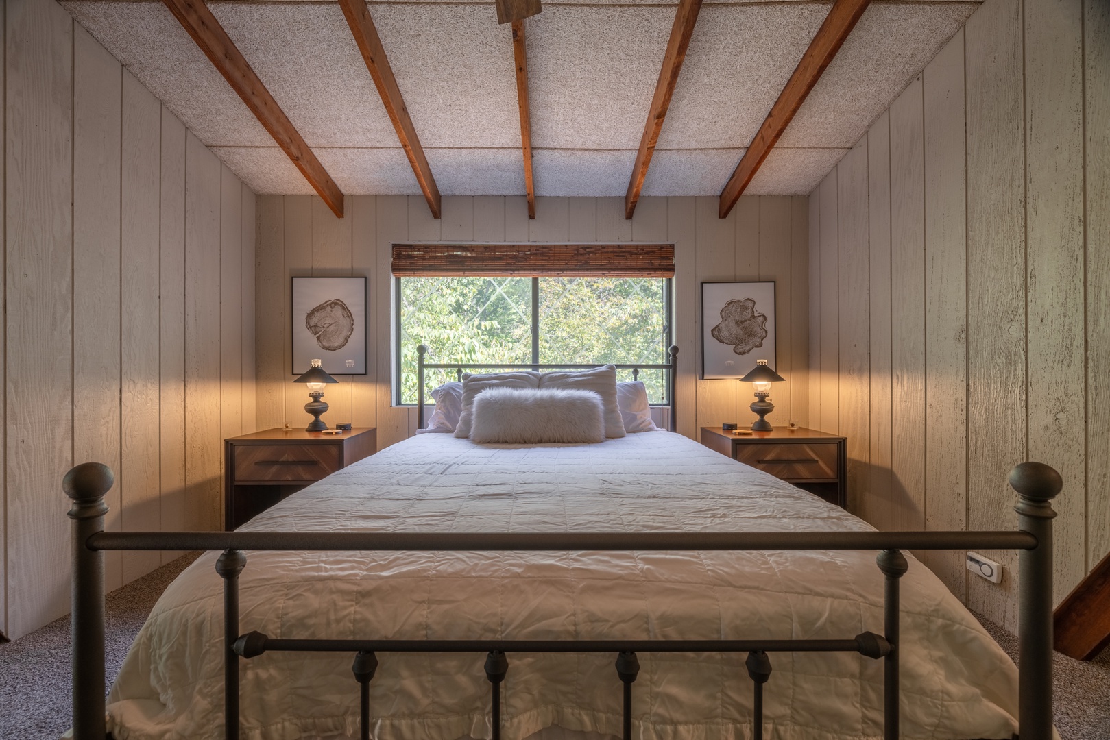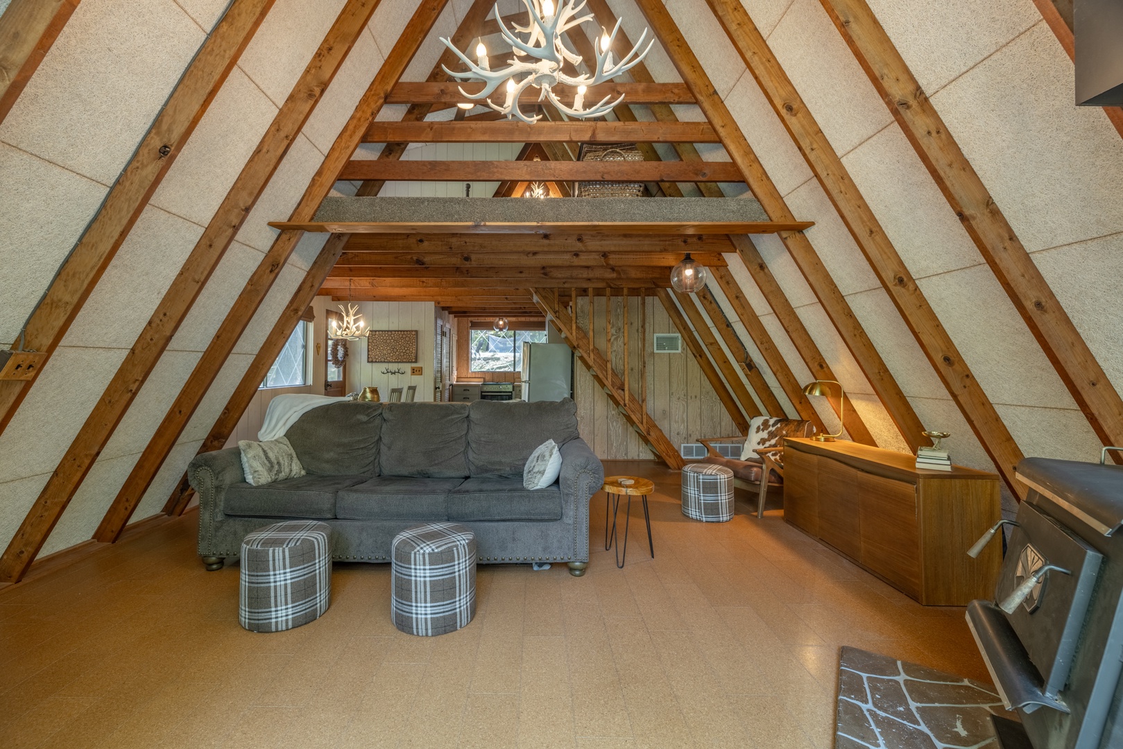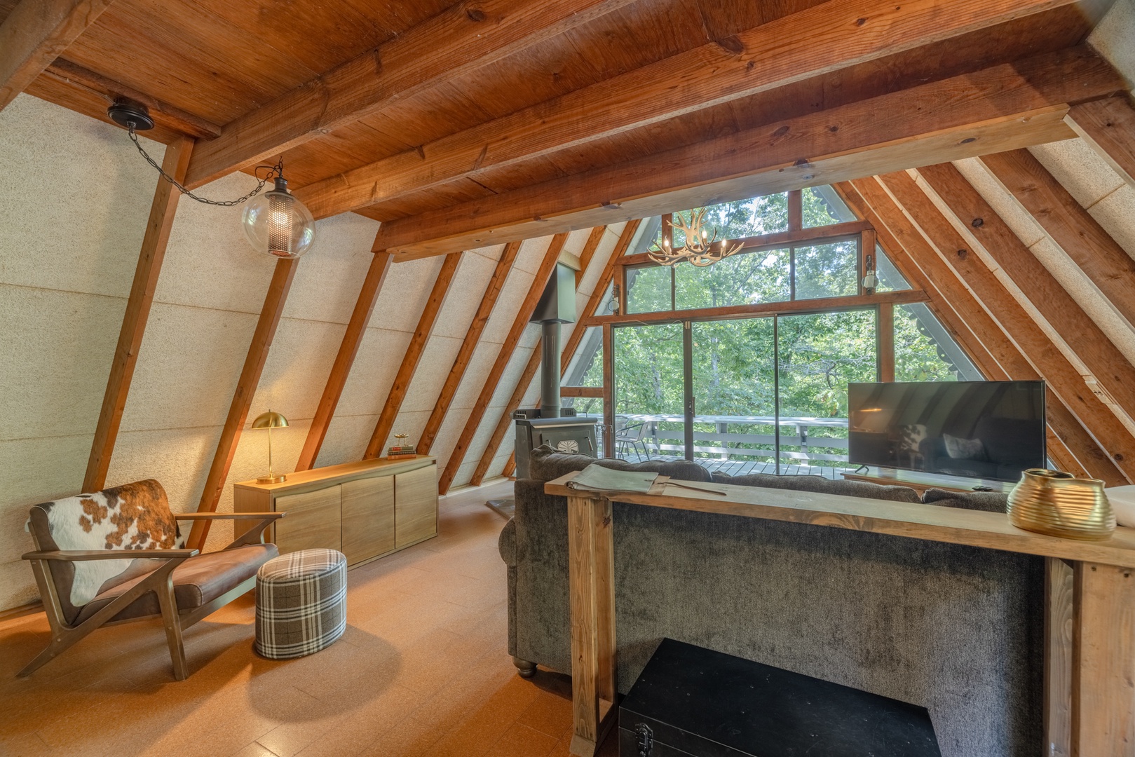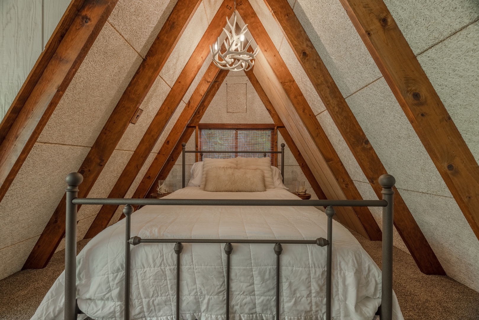 • Loft-style chalet with 2 beds (1 queen, 1 full), 1 full bathroom, sleeps up to 4 adults (pack ’n play available)