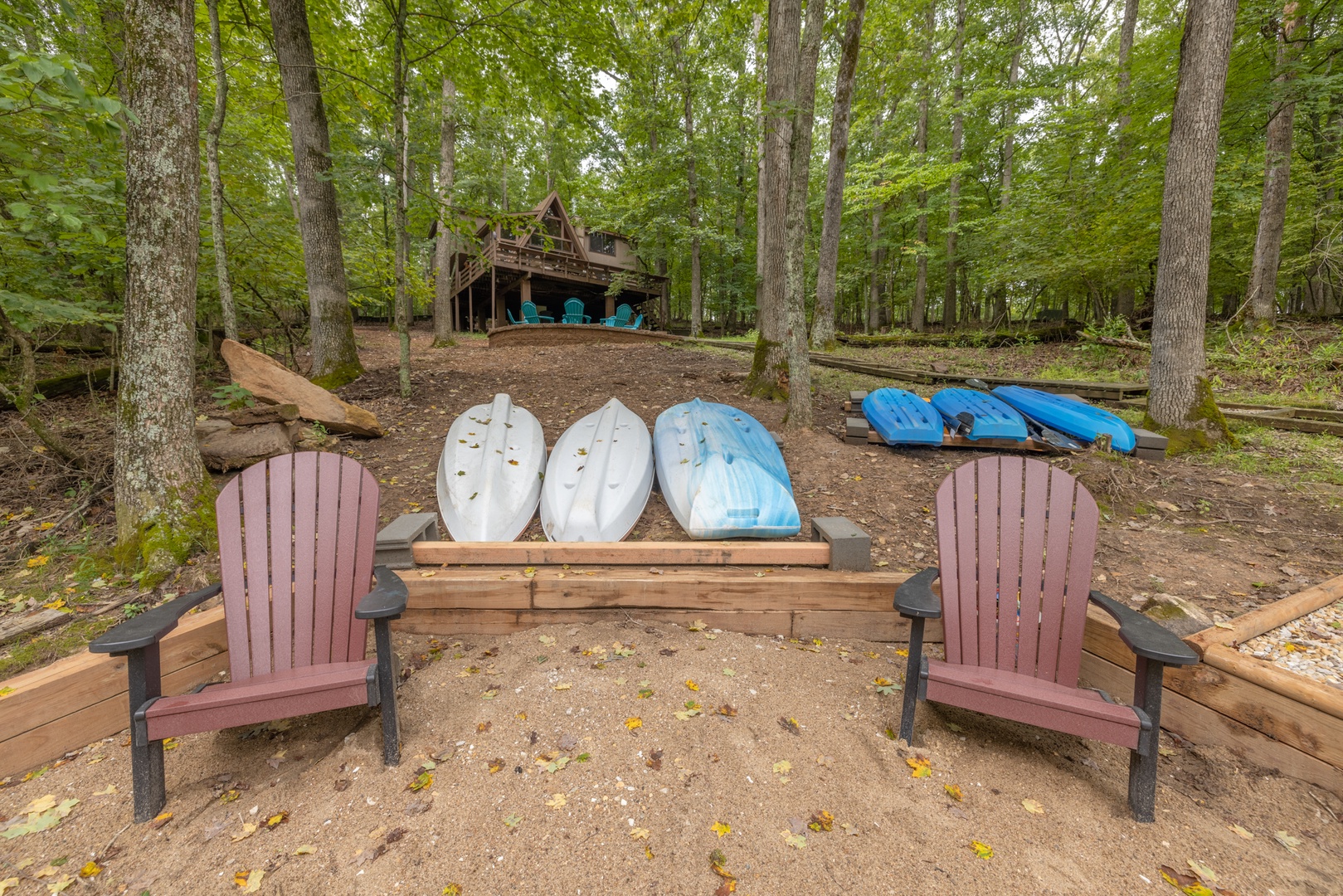 The chalet was super clean inside. Beautiful view of the lake cove. Everything we needed for our stay was provided. The fire pit area and kayak launch were great. Will definitely stay here again!