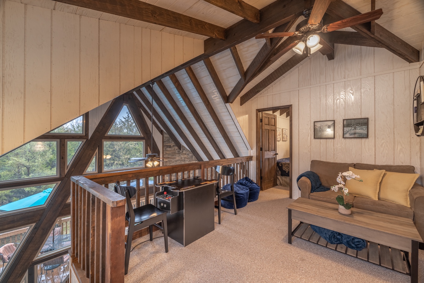• Upstairs Loft – Sleeper sofa (twin), two-person arcade table