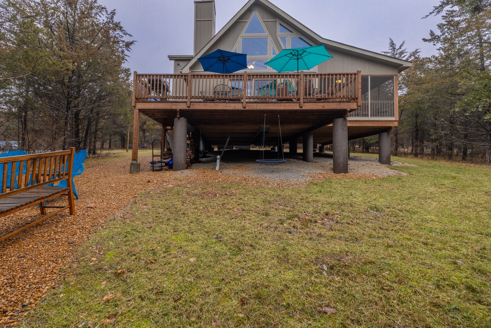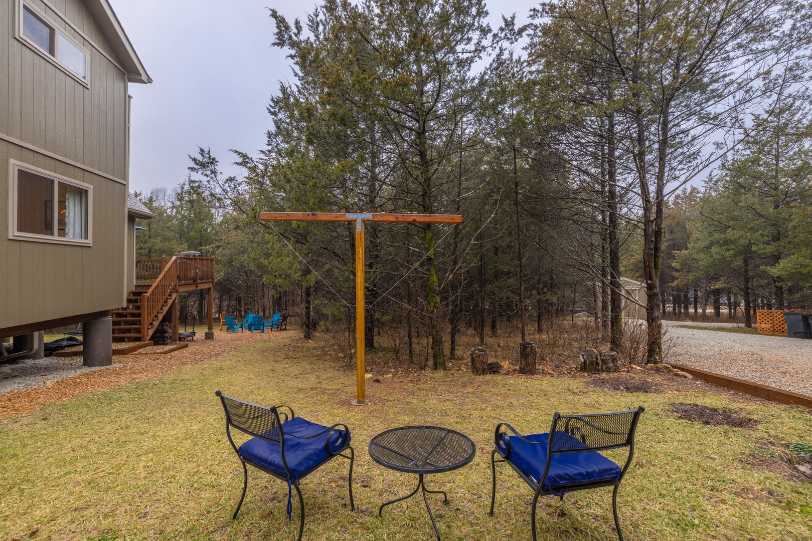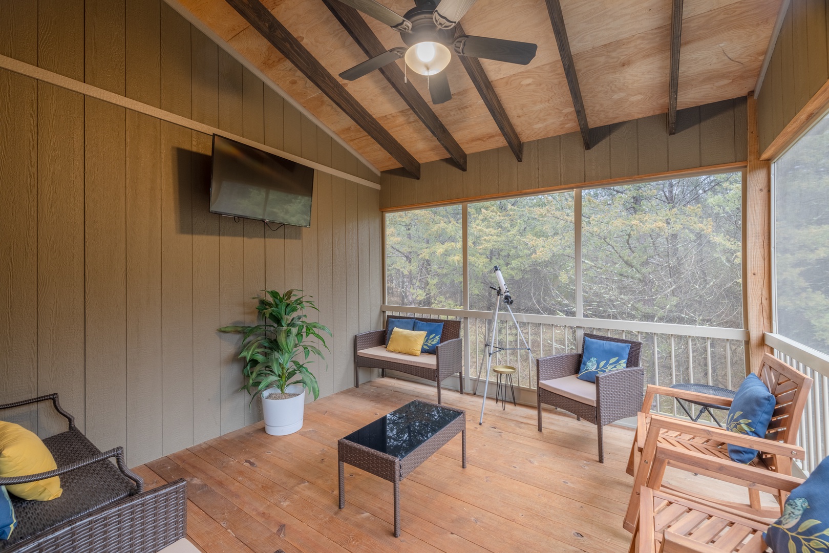 Tons of entertainment options are located both inside and out! Enjoy challenging your guests to a friendly game of Pacman on the arcade table in the loft, dig into a closet full of board games and puzzles, or sit back and relax in nature in the gorgeous screened-in porch offering plenty of seating, a TV, and of course, stunning panoramic views of the outdoors. The private deck flows off of the main level through the sliding glass doors and offers additional outdoor seating, while the newly built custom fire pit is the perfect place for stargazing under Innsbrook’s uninterrupted night sky. New outdoor lighting enhances the ambiance for evening hangouts, and the full bocce ball court and cozy hammock section with two hammocks offer even more ways to unwind.