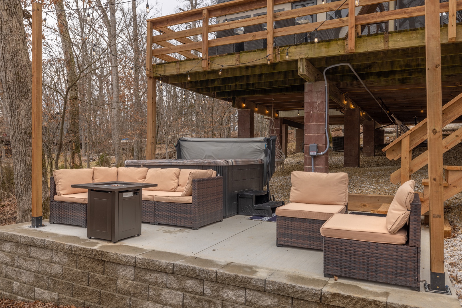 Below the deck the hot tub and hangout area is a special space for unwinding and connecting year round!