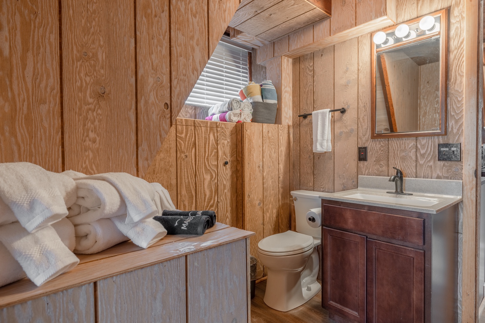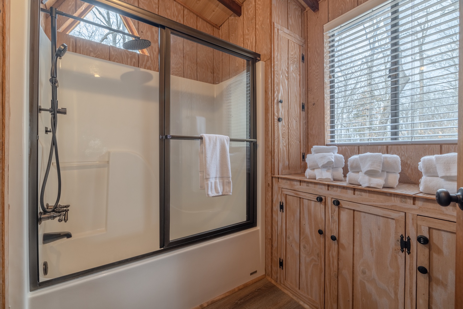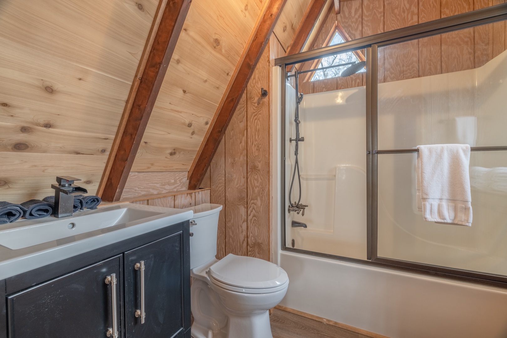 The second floor bath is equipped with a combination shower and tub to finish off a great day with a hot shower or bath!
