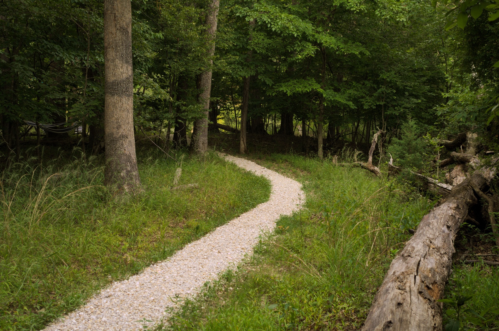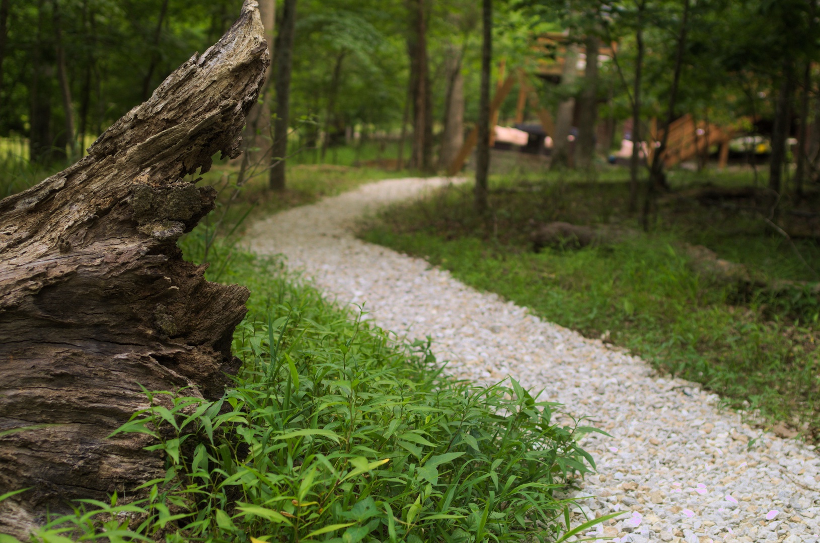 The path to Limerick Lake passes by the hot tub patio and through the woods.
