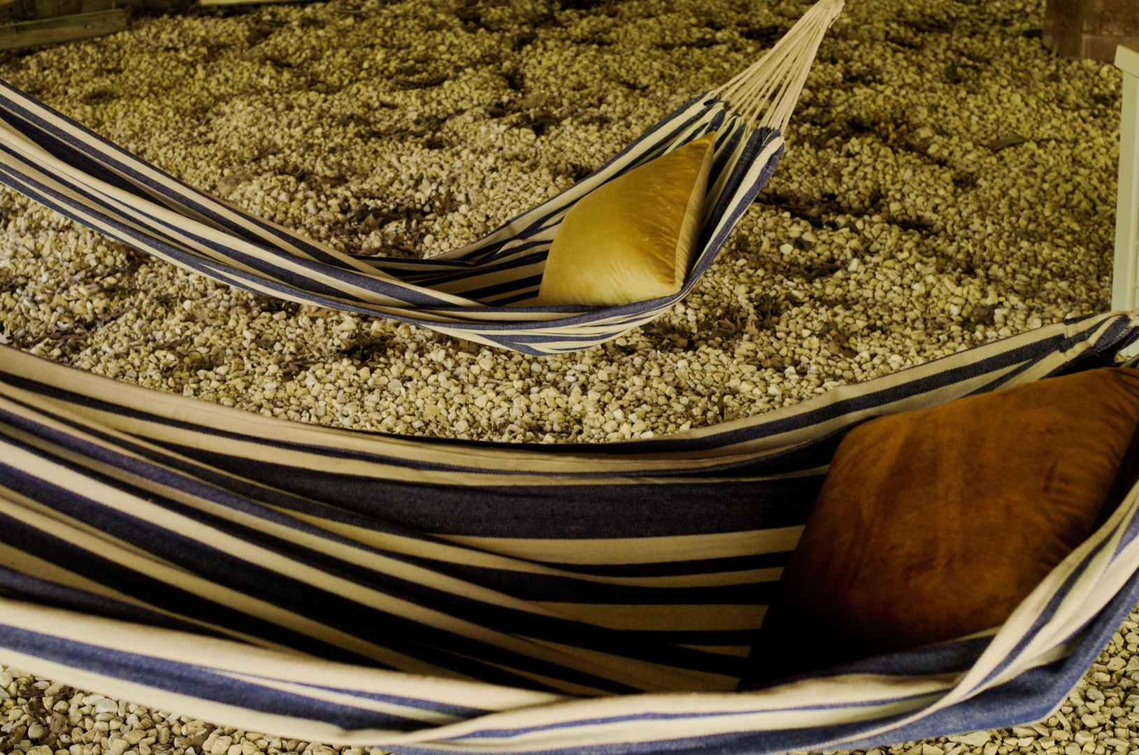 Located in the space below the chalet, the hangout space is a fun place to enjoy the shade.