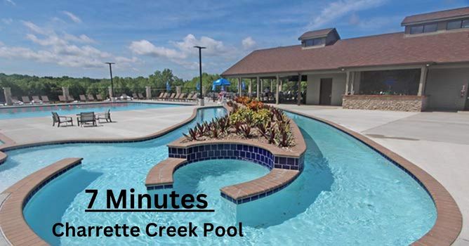 The spacious zero entry pool with a lazy river is a beautiful place for fun in the sun.
