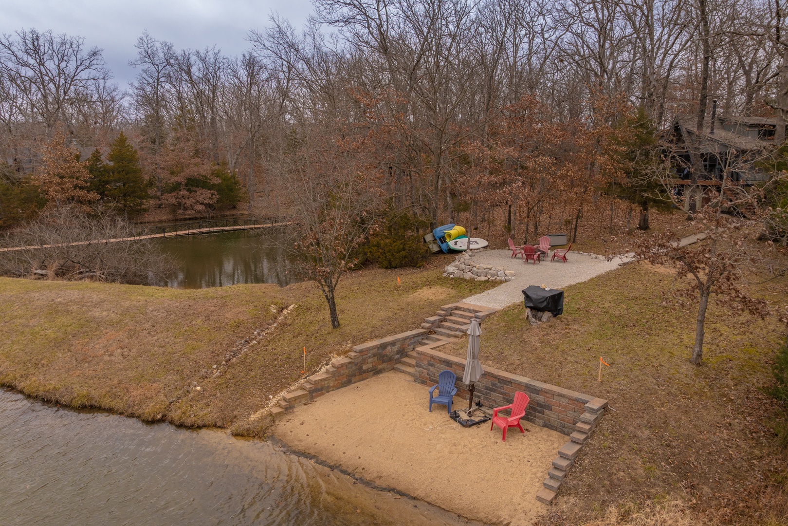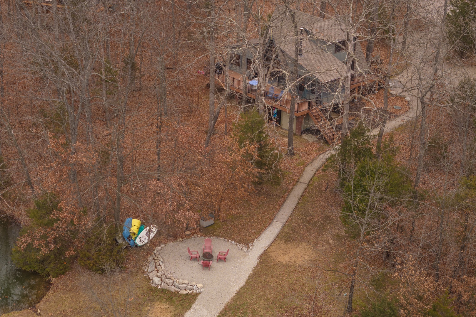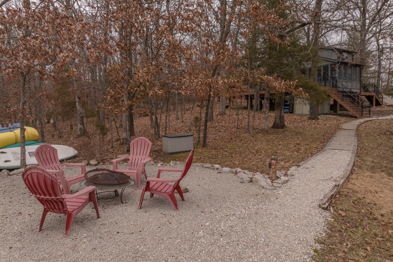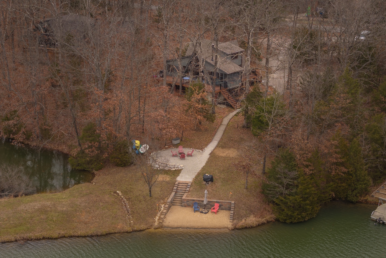 • Private path leading down to the lake and the lakeside fire pit