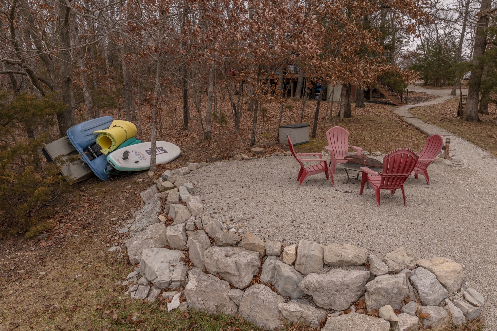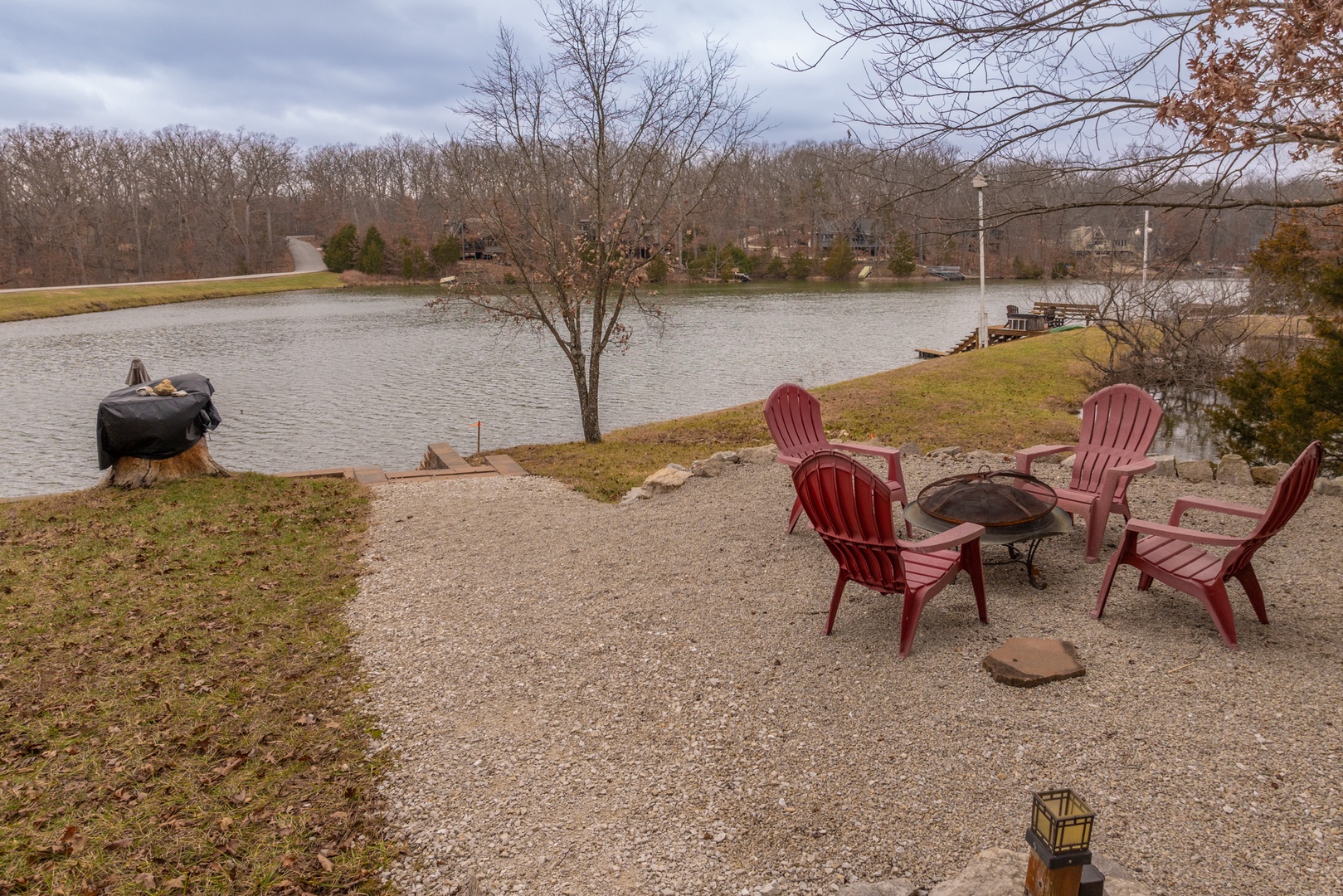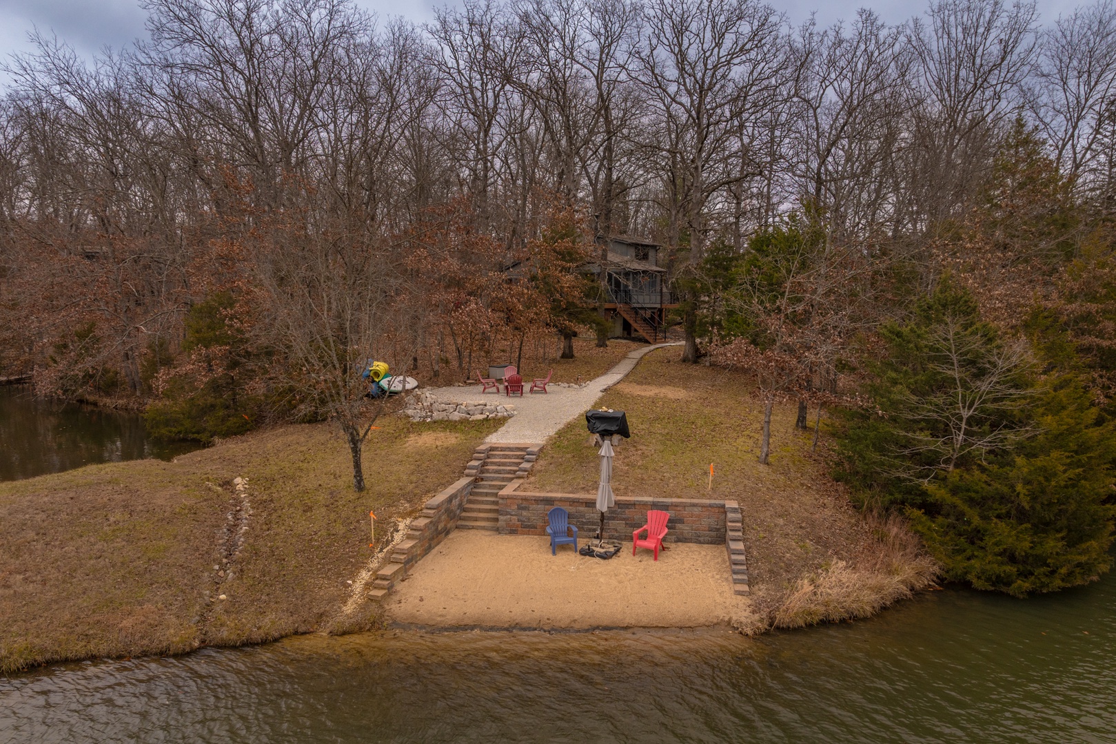 • Private path leading down to the lake and the lakeside fire pit