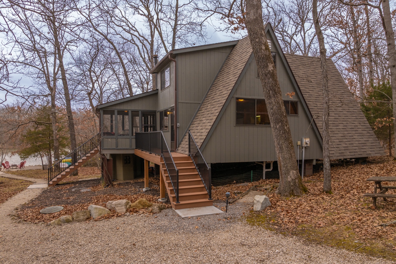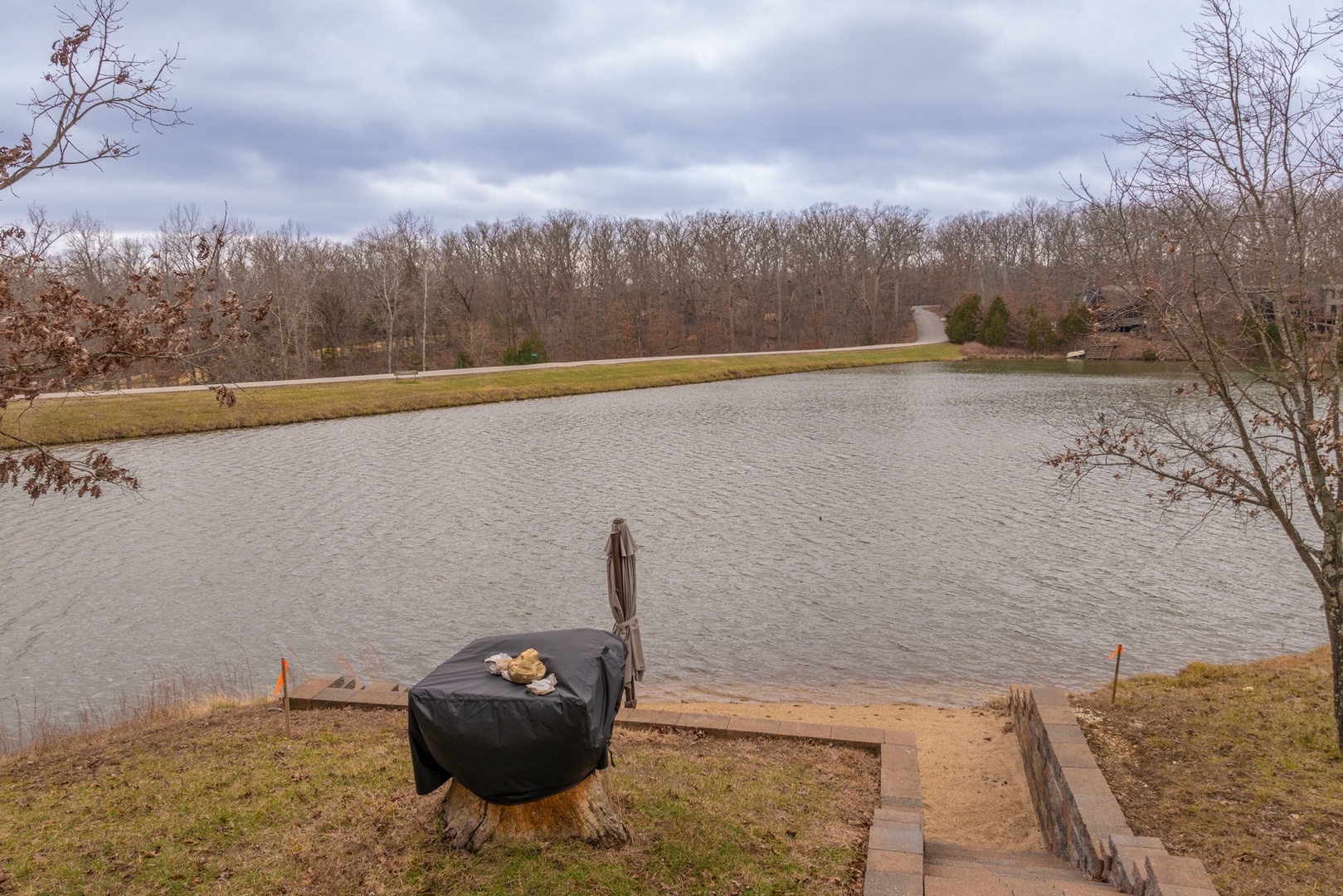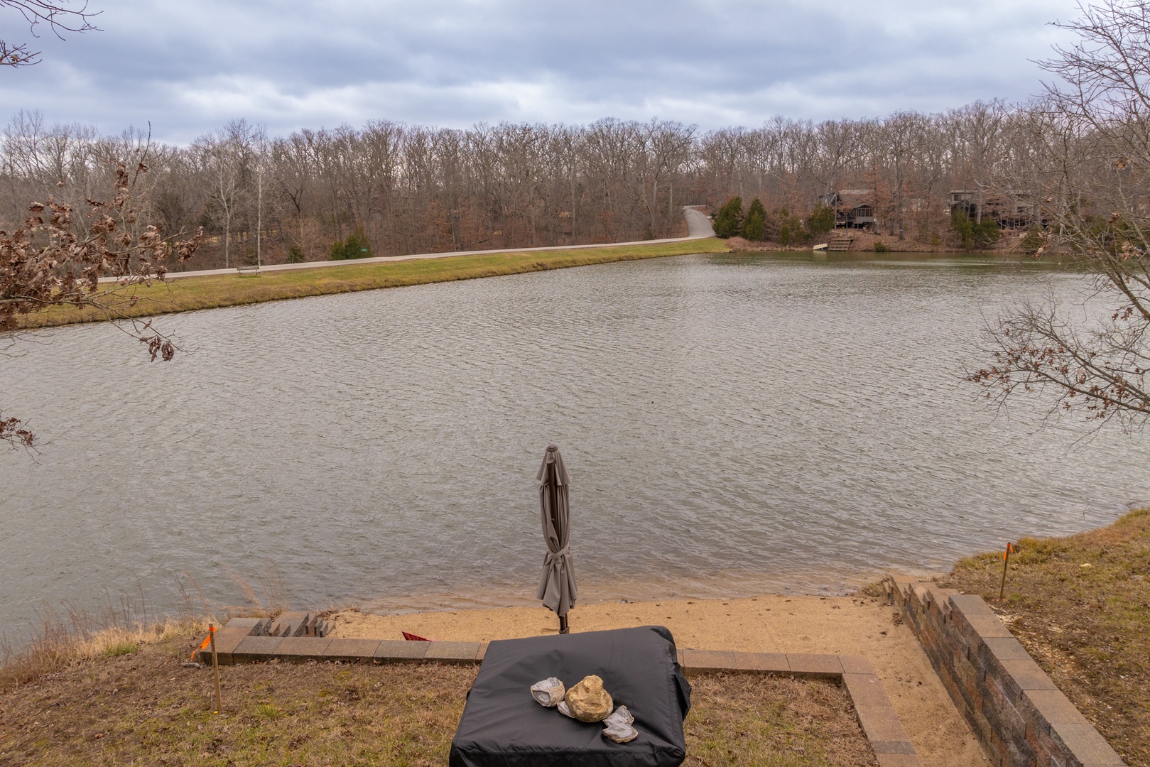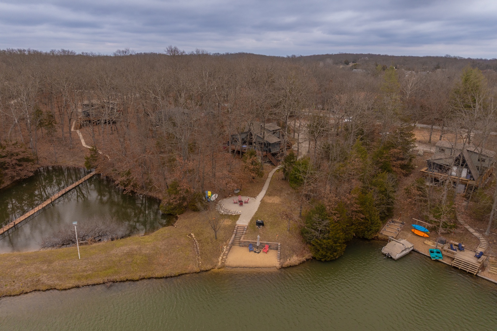 • Private path leading down to the lake and the lakeside fire pit