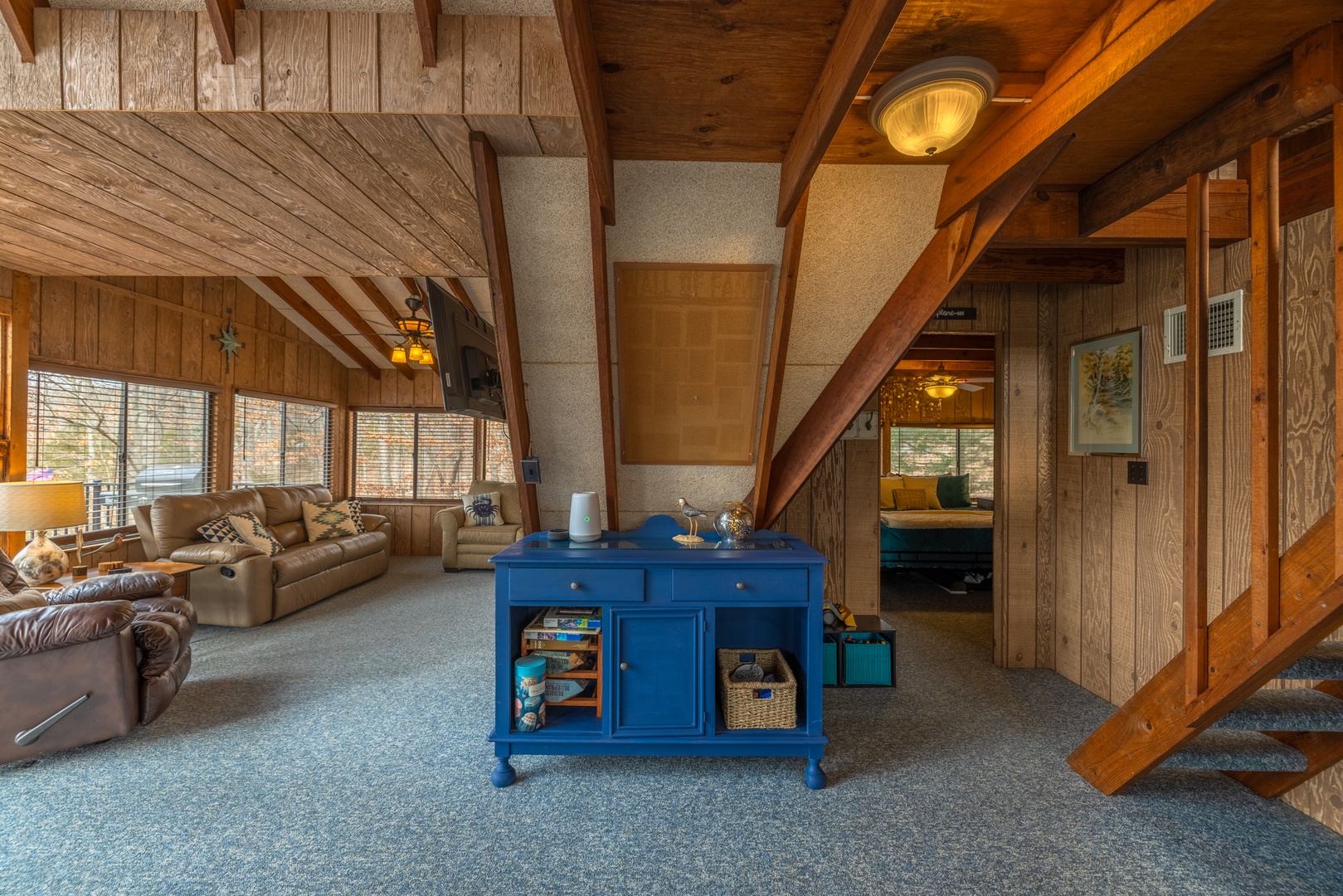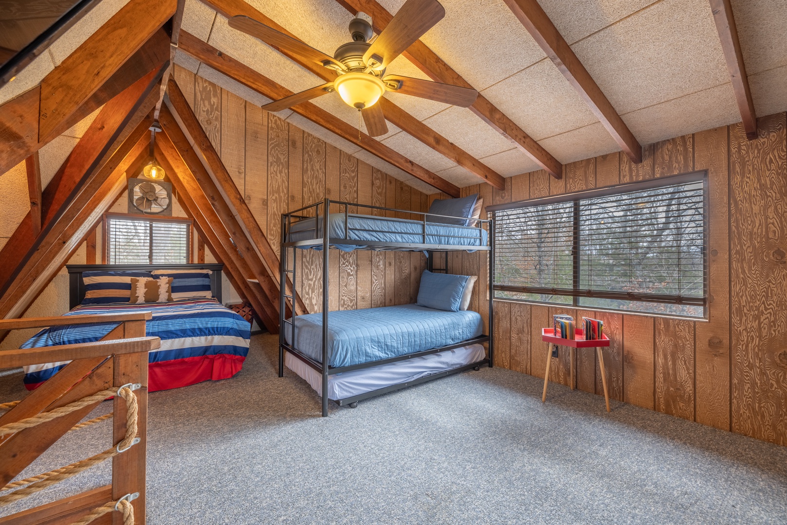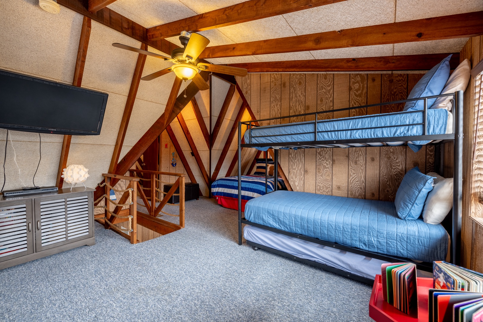 • Loft – 2 sets of twin bunk beds, 1 full bed, TV