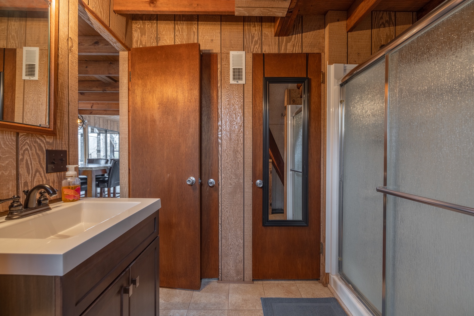 The primary bedroom, located on the main level, features a cozy king bed for a restful night's sleep. Upstairs, the loft offers a queen bed and two sets of twin bunk beds, making it the perfect spot for kids or extra guests. With a full bathroom and TV, the loft is a great hangout space for everyone to unwind after a day of adventure.