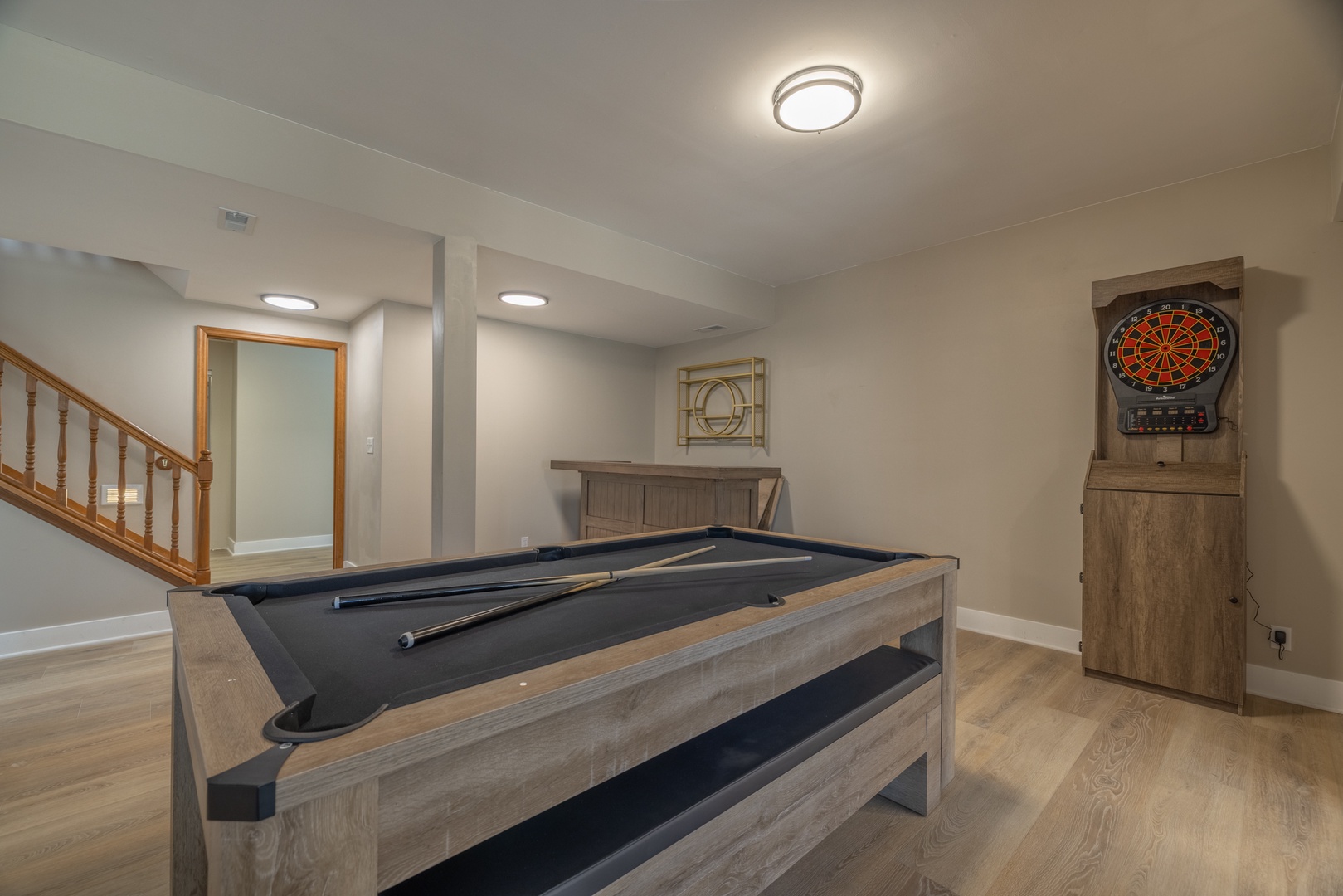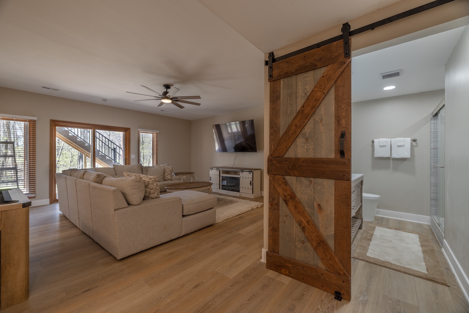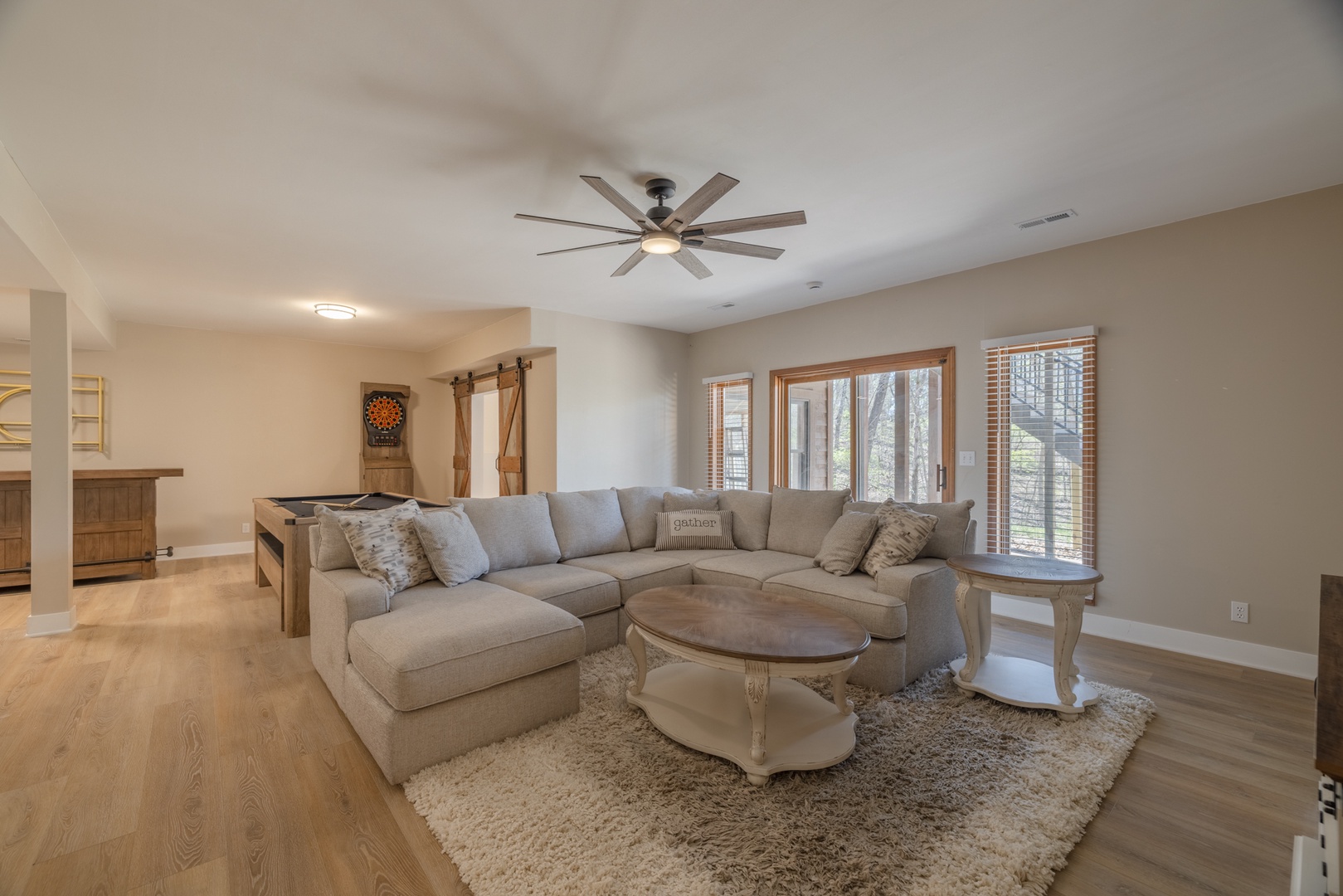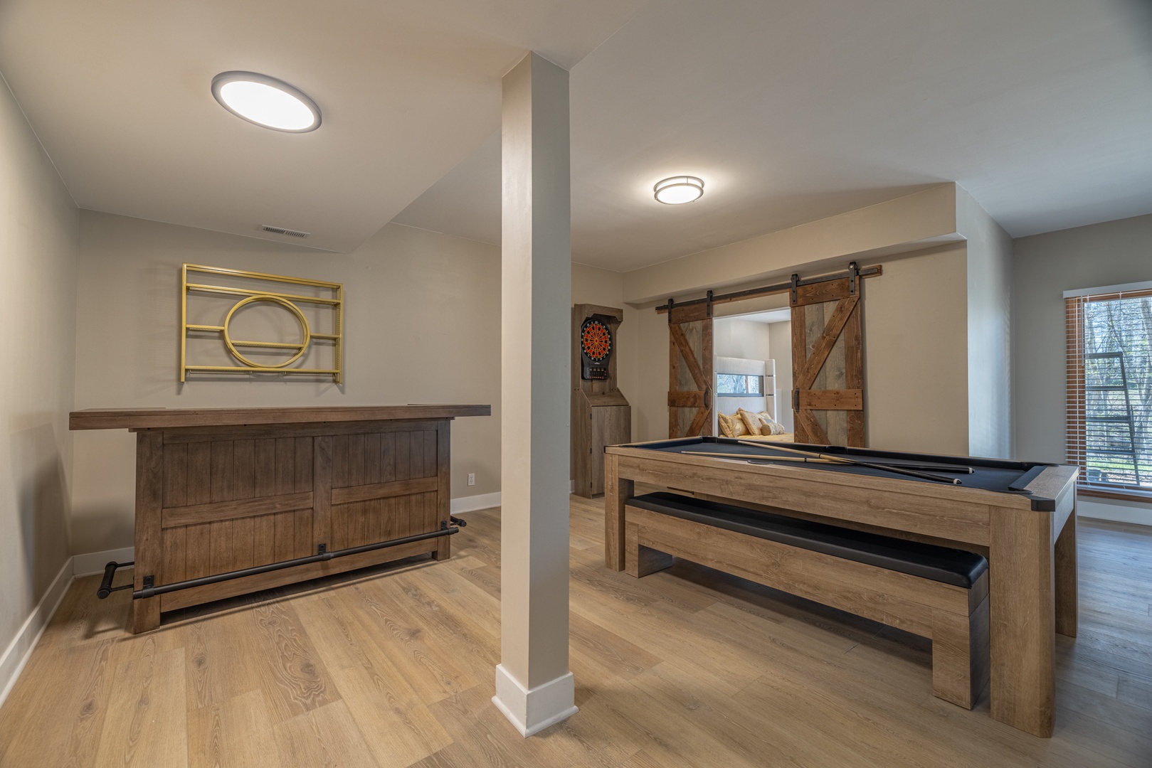 With multiple king bedrooms, including a main-level primary suite and unique adult bunk setup, everyone can enjoy comfort and privacy. The fully finished lower level adds even more space to spread out, featuring an additional living area, pool table, and walk-out access to a covered patio.