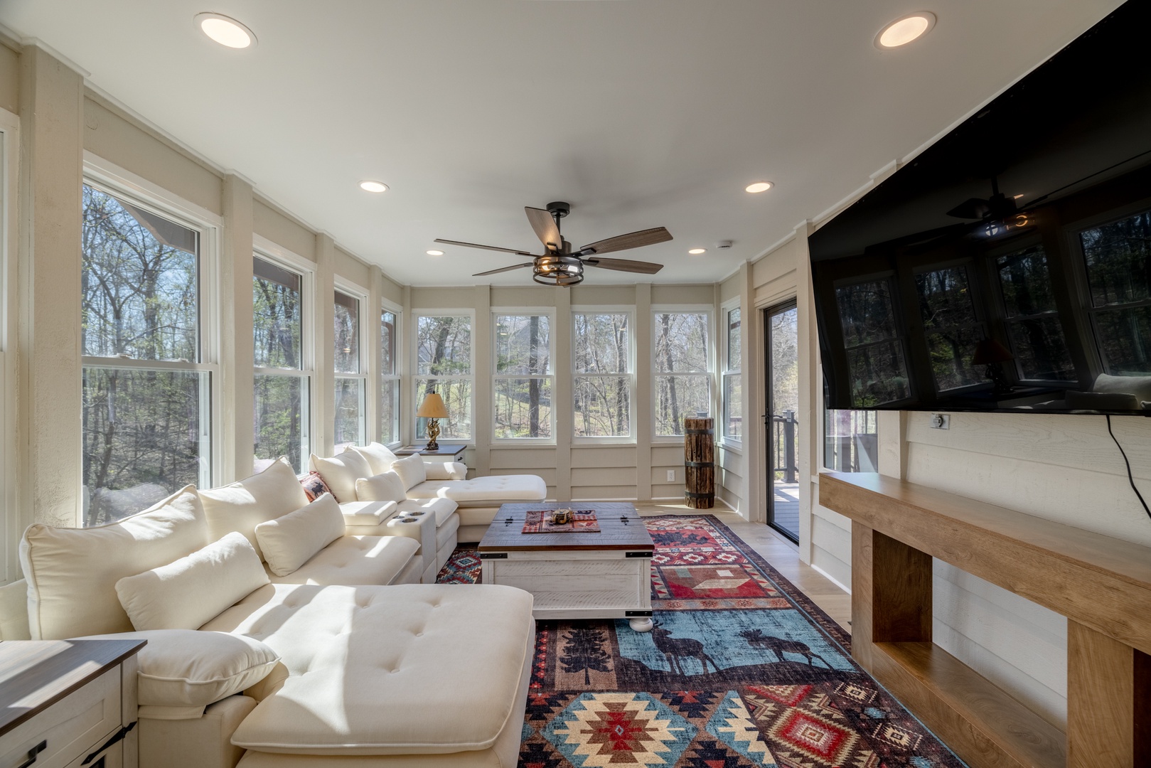 • Beautiful sunroom with cozy furniture and stunning views – walkout to the deck