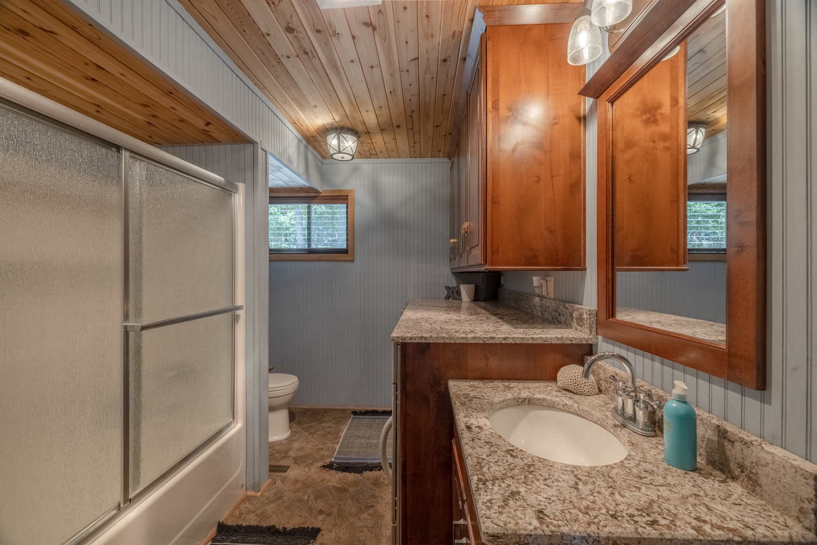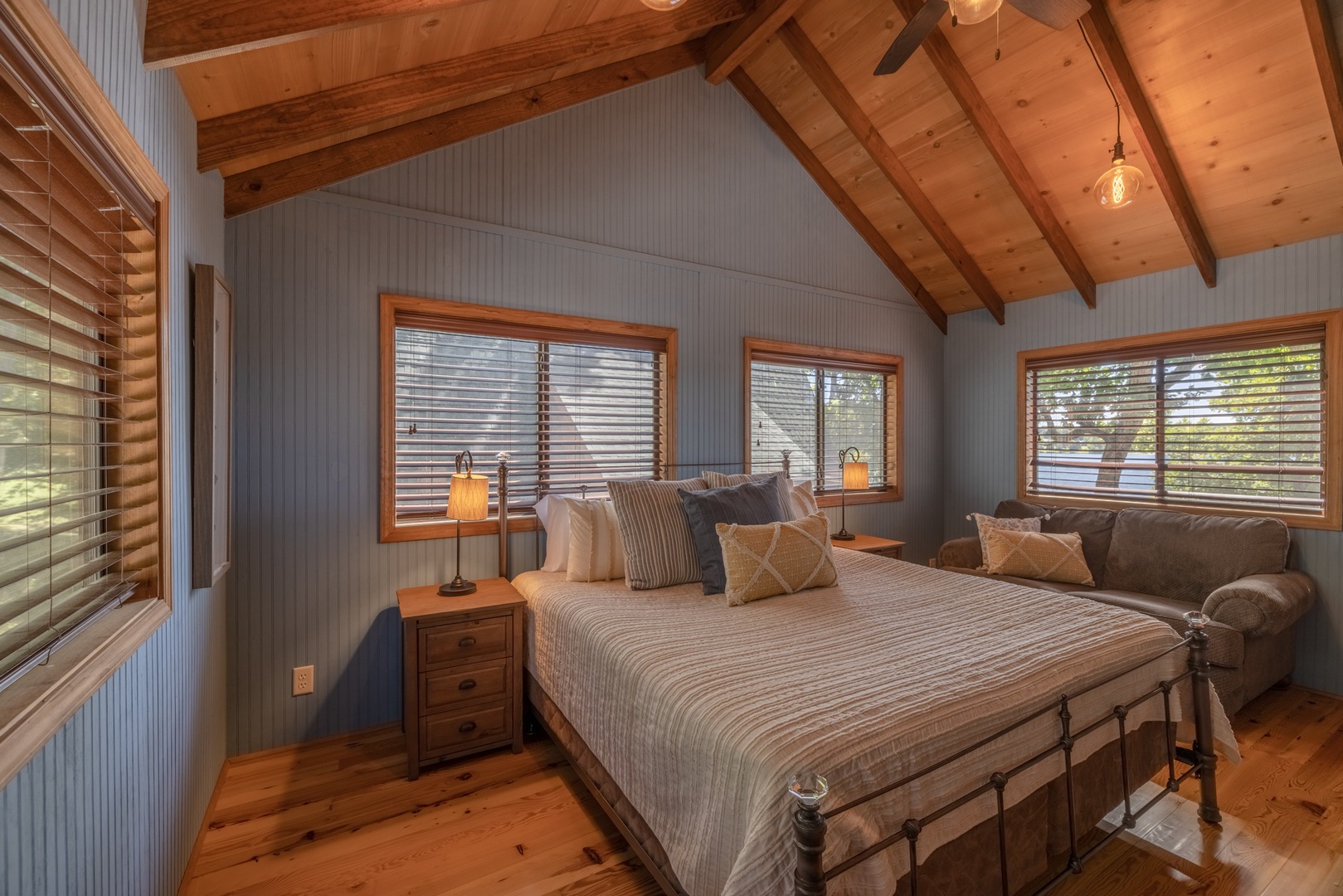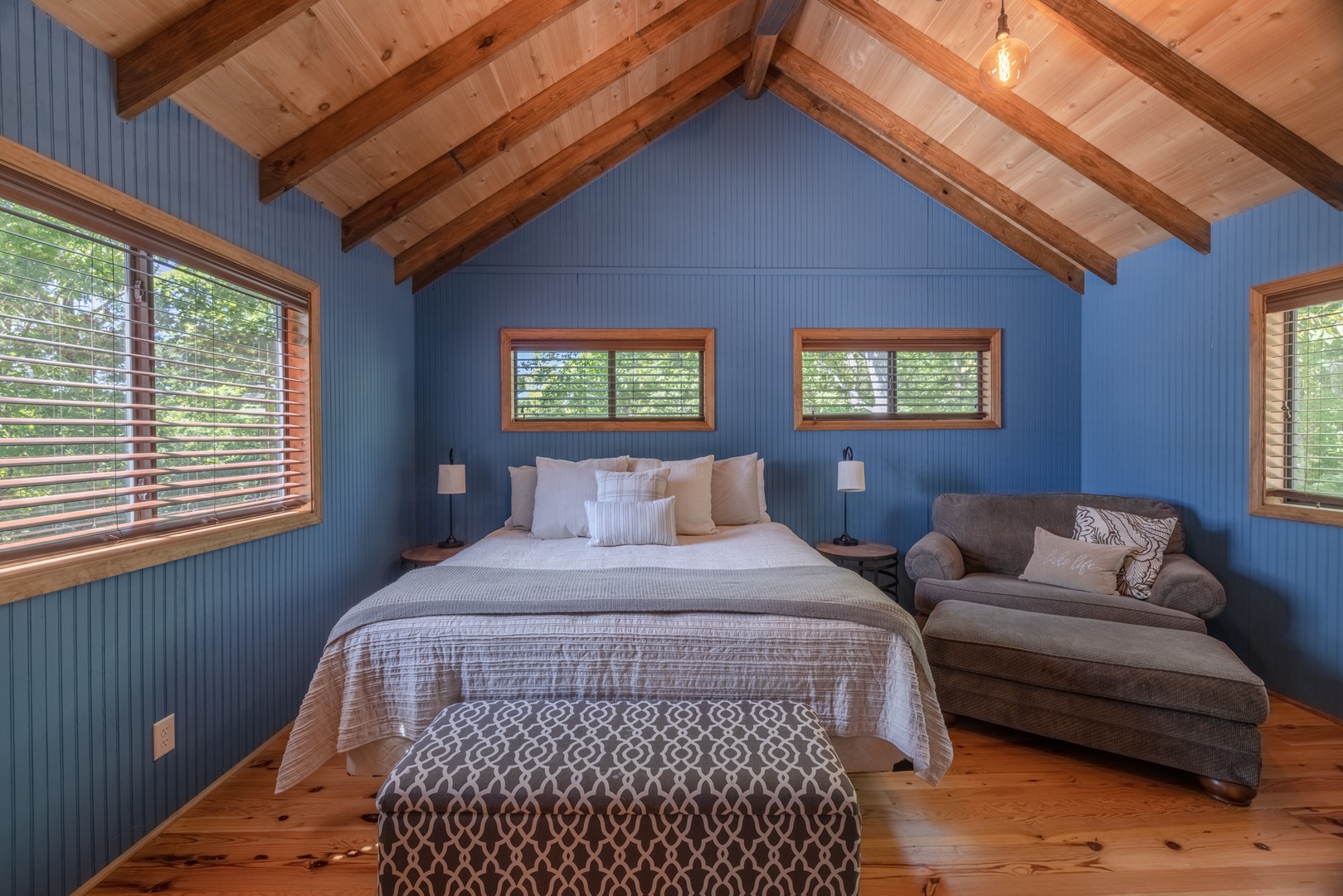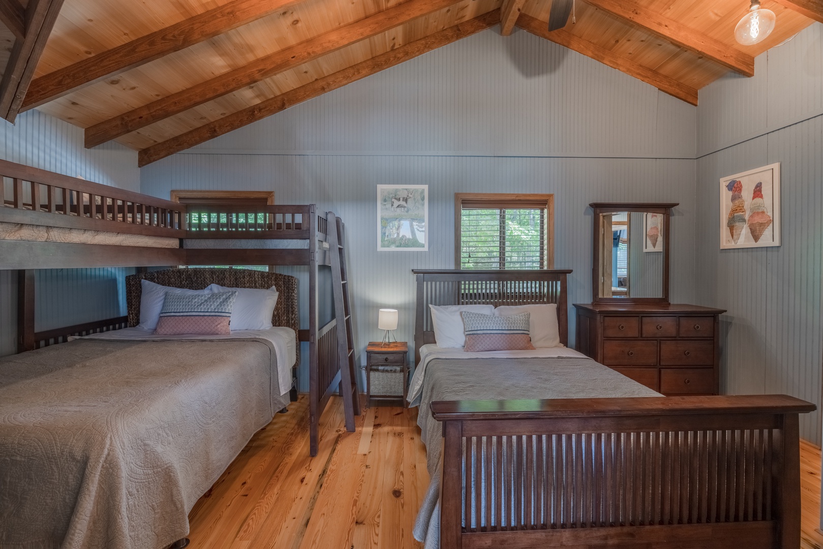 With four bedrooms and four full baths in the main chalet, there is plenty of space for the whole crew to get ready for a night at the Clubhouse or a Summer Breeze concert! The primary suite with private en suite and one full bath with washer/dryer is located on the main chalet’s main level, while three bedrooms and one full bath occupy the main chalet’s upper level.