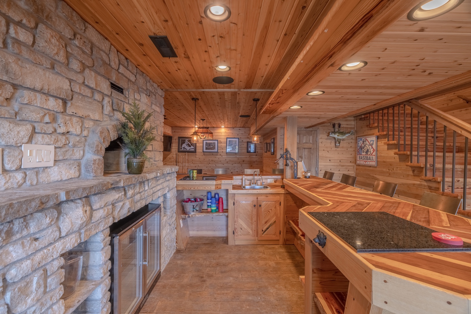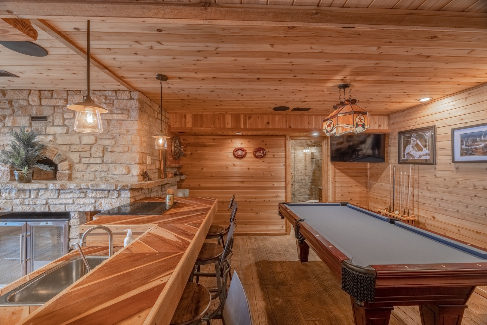 • Fully finished lower level with wet bar, mini refrigerator, pool table, dart board, smart TV, and full bath (wood burning pizza oven not available for use)